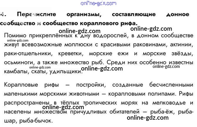 Готовые домашние задания по Биологии за 5 класс Учебник Сивоглазов, Плешаков 2020 - §26. Жизнь в морях и океанах 4