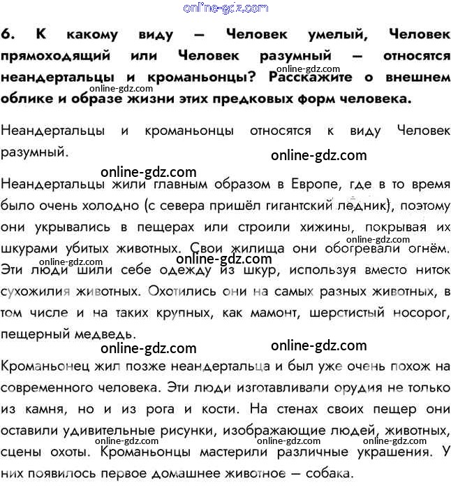 Готовые домашние задания по Биологии за 5 класс Учебник Сивоглазов, Плешаков 2020 - §27. Как появился человек на Земле 6