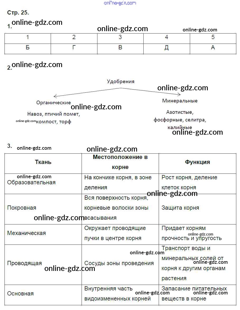 Готовые домашние задания по Биологии за 6 класс Рабочая тетрадь Исаева, Романова Инновационная школа 2017 - Страницы 25