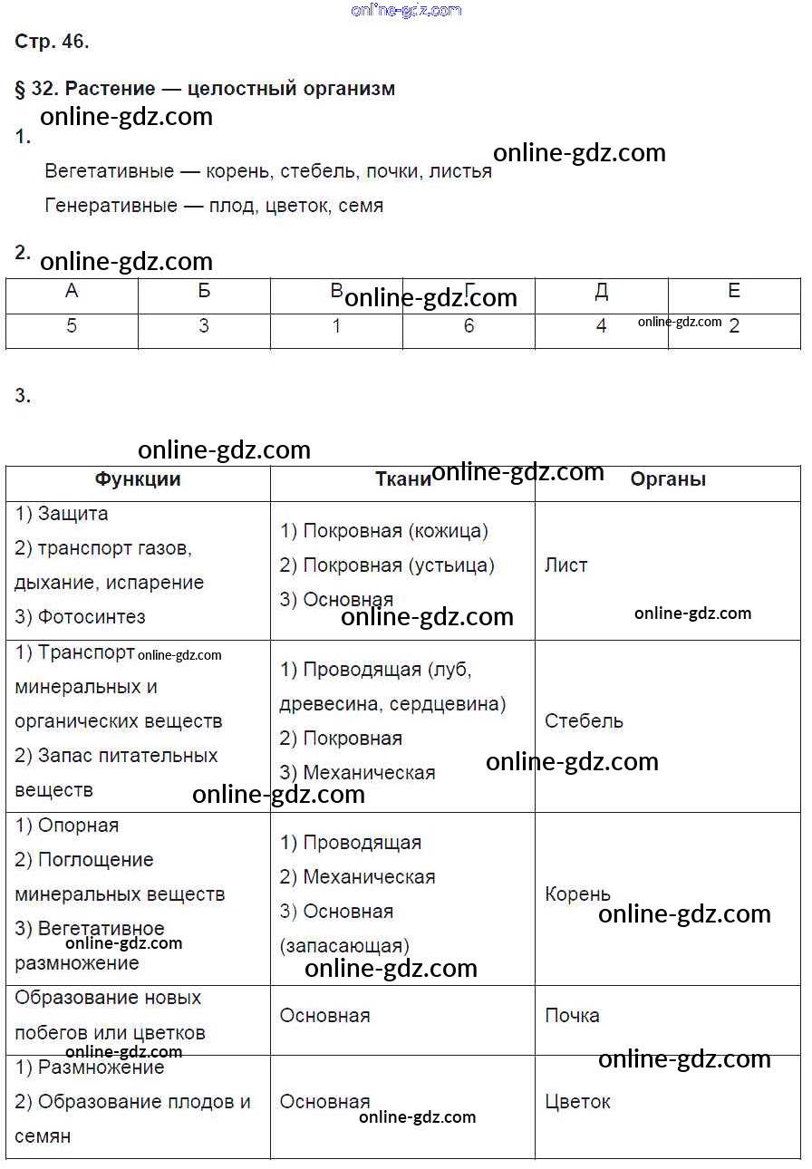 Готовые домашние задания по Биологии за 6 класс Рабочая тетрадь Исаева, Романова Инновационная школа 2017 - Страницы 46