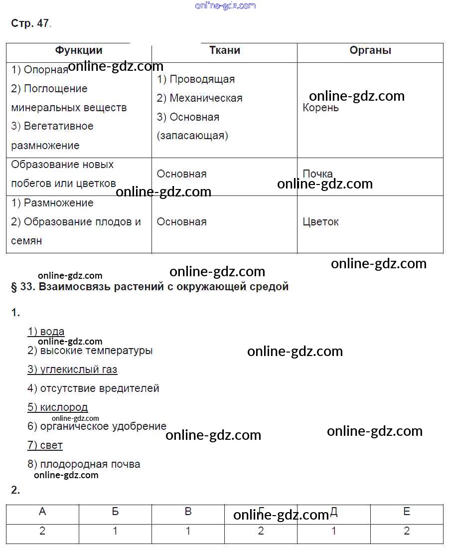 Готовые домашние задания по Биологии за 6 класс Рабочая тетрадь Исаева, Романова Инновационная школа 2017 - Страницы 47