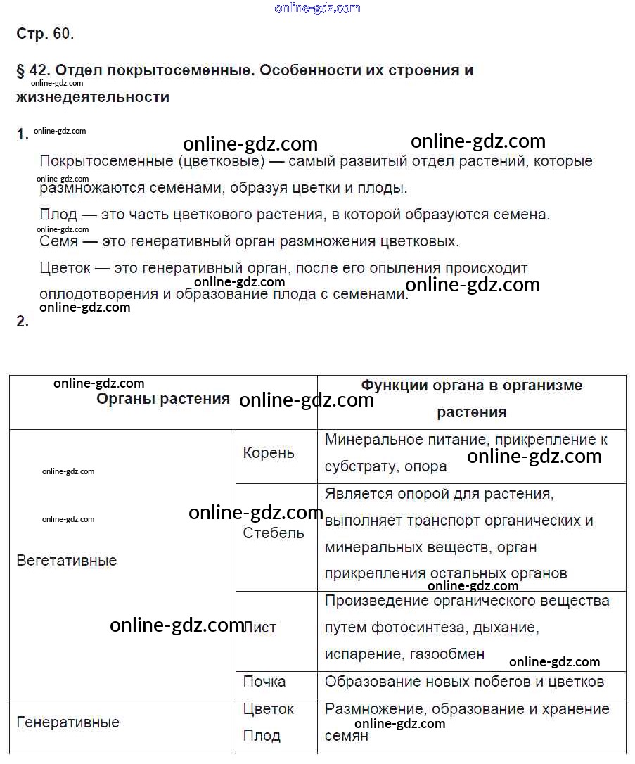 Готовые домашние задания по Биологии за 6 класс Рабочая тетрадь Исаева, Романова Инновационная школа 2017 - Страницы 60