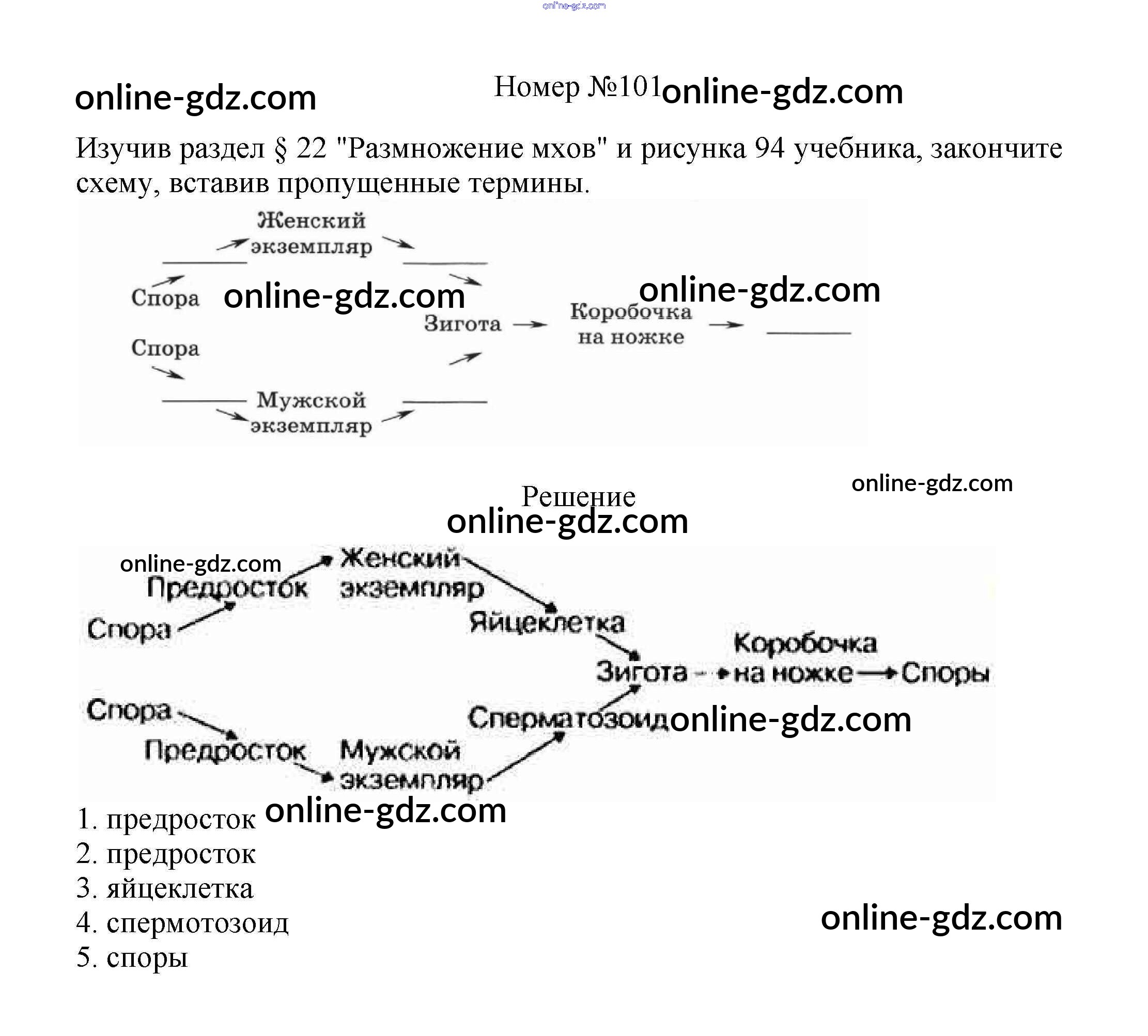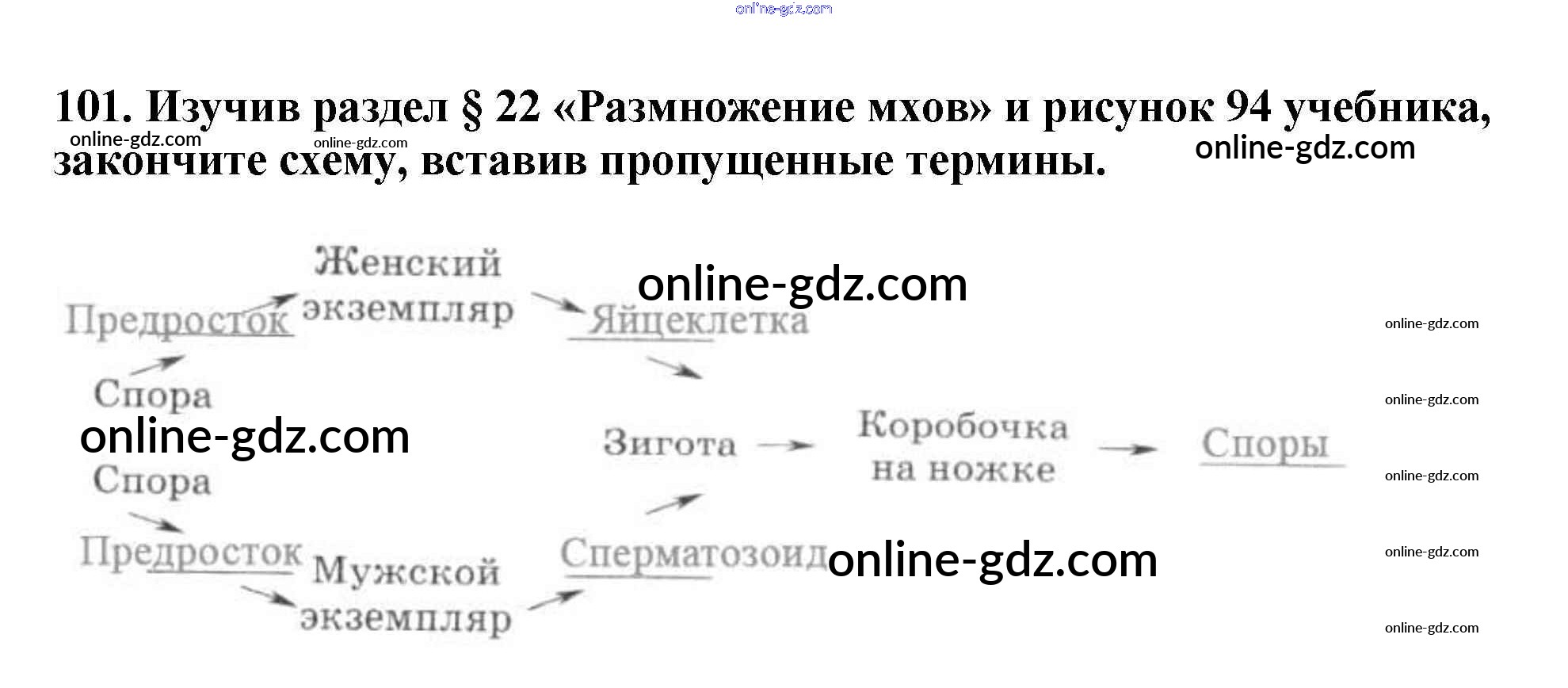 Готовые домашние задания по Биологии за 6 класс Рабочая тетрадь Пасечник УМК 2017 - Упражнения 101