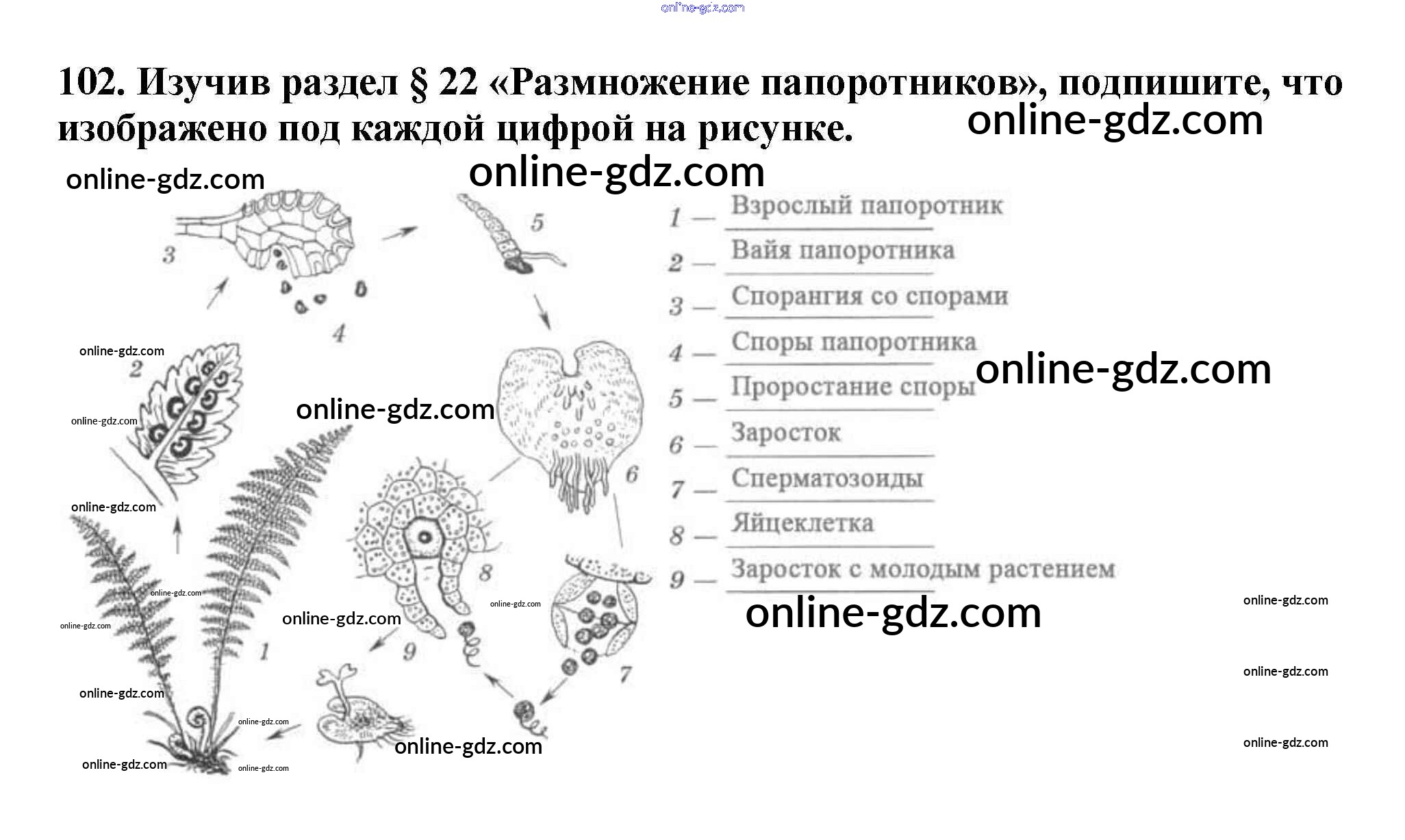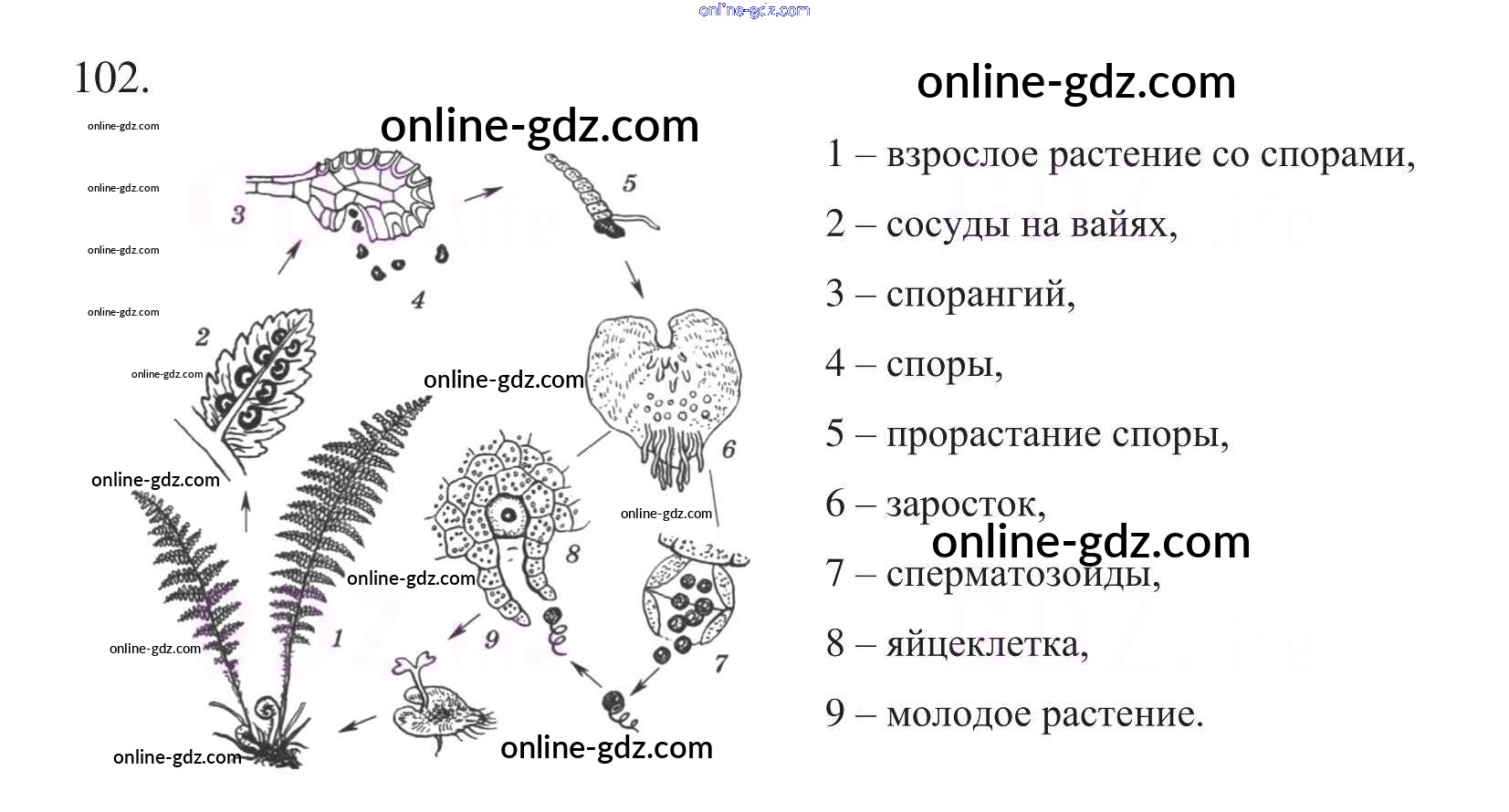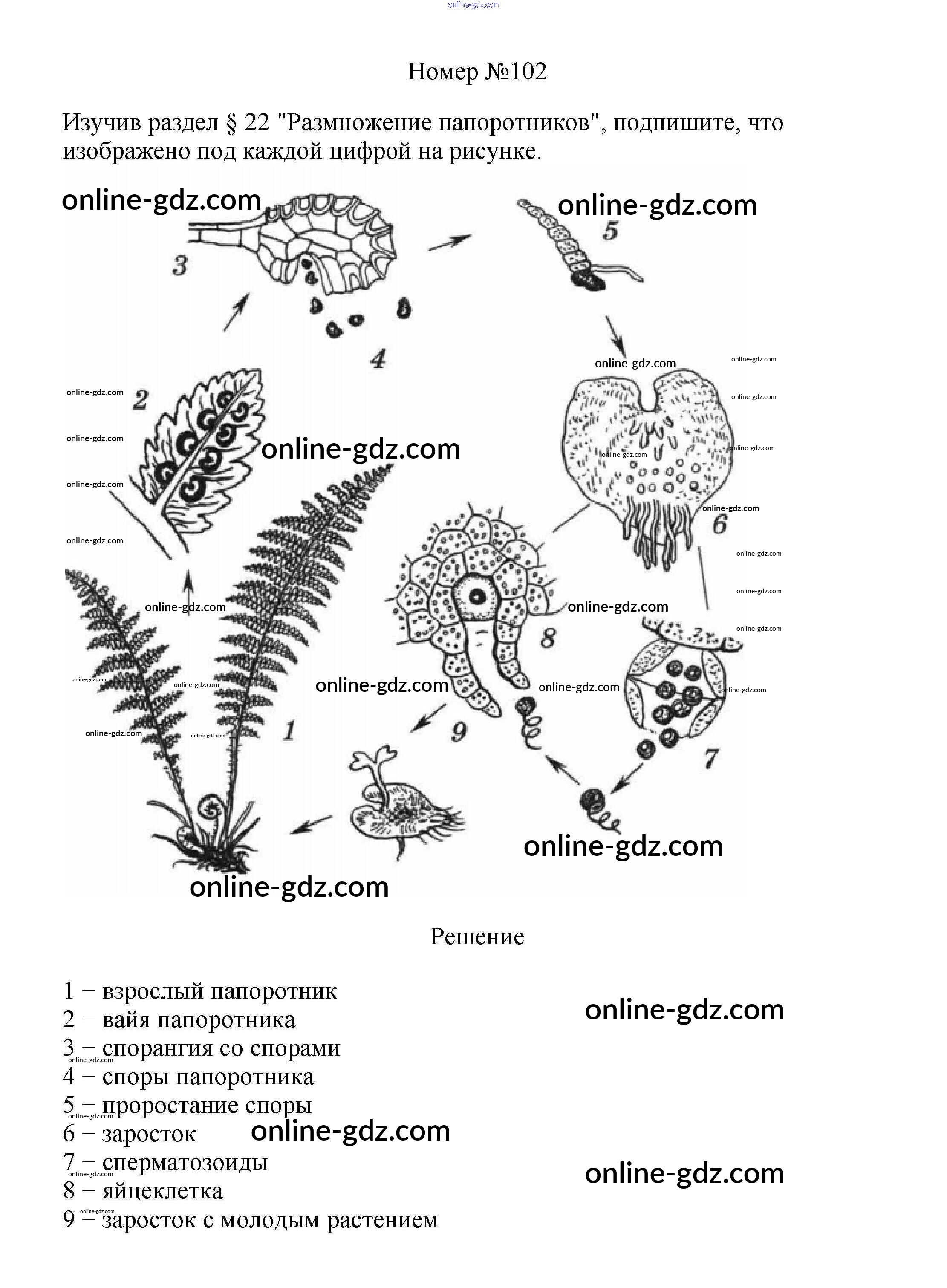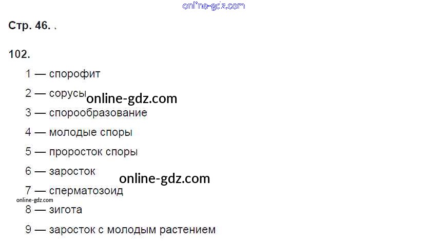 Готовые домашние задания по Биологии за 6 класс Рабочая тетрадь Пасечник УМК 2017 - Упражнения 102