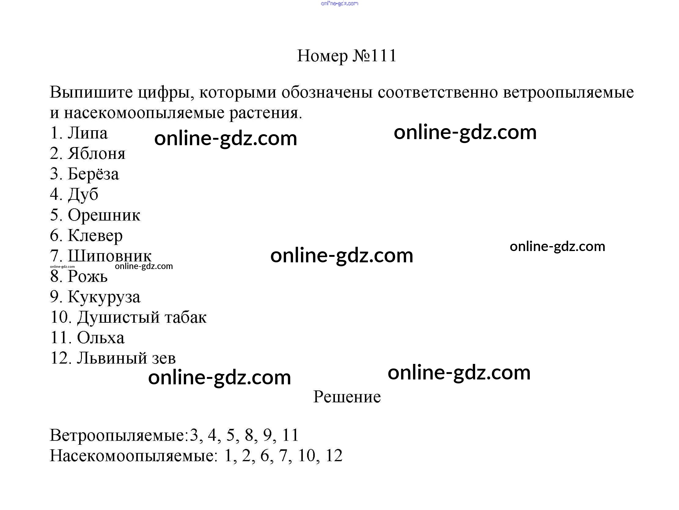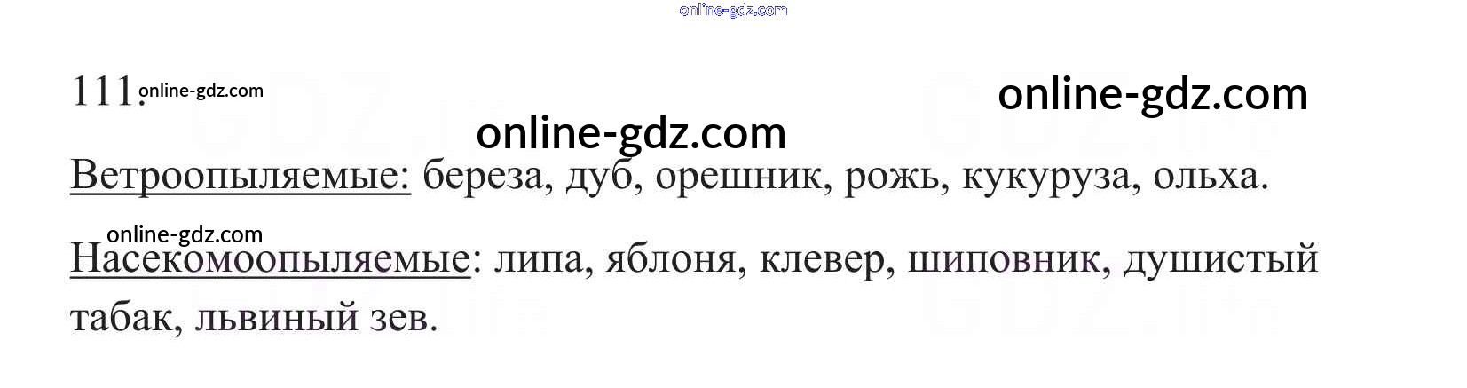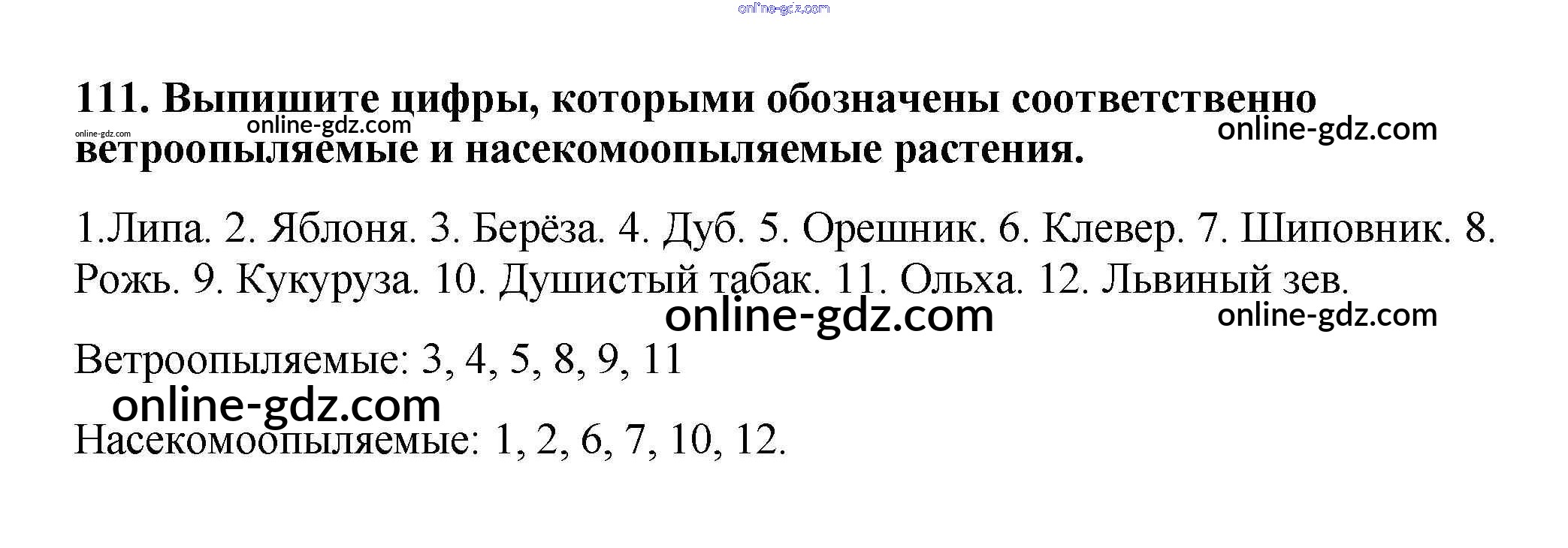 Готовые домашние задания по Биологии за 6 класс Рабочая тетрадь Пасечник УМК 2017 - Упражнения 111
