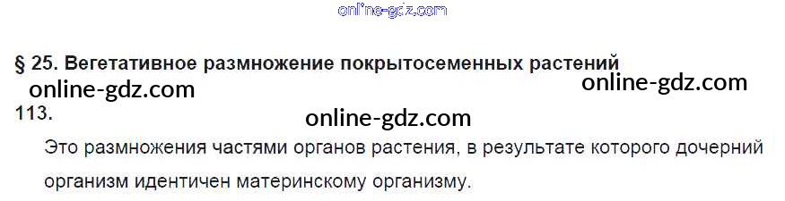 Готовые домашние задания по Биологии за 6 класс Рабочая тетрадь Пасечник УМК 2017 - Упражнения 113