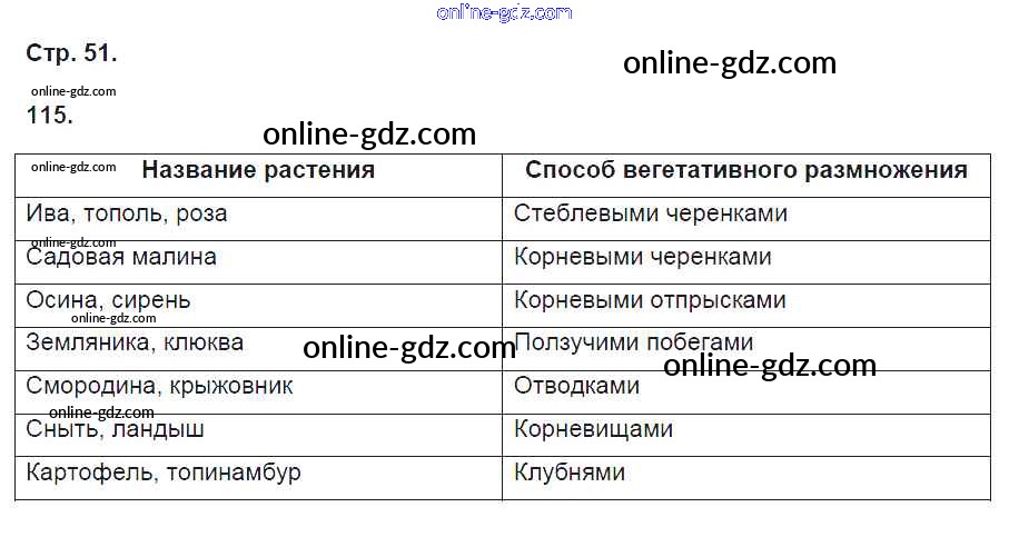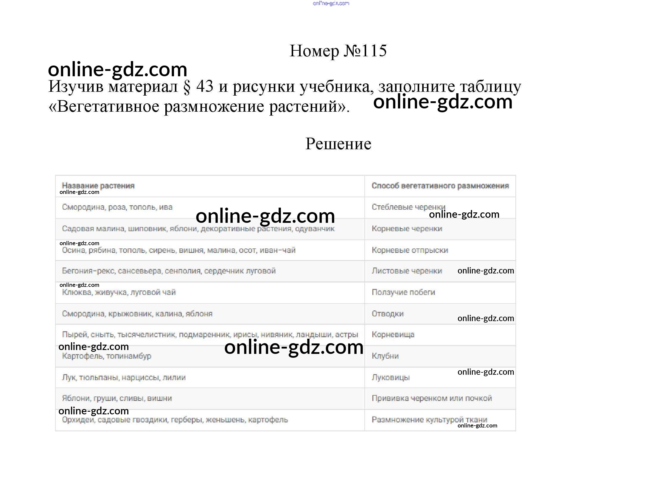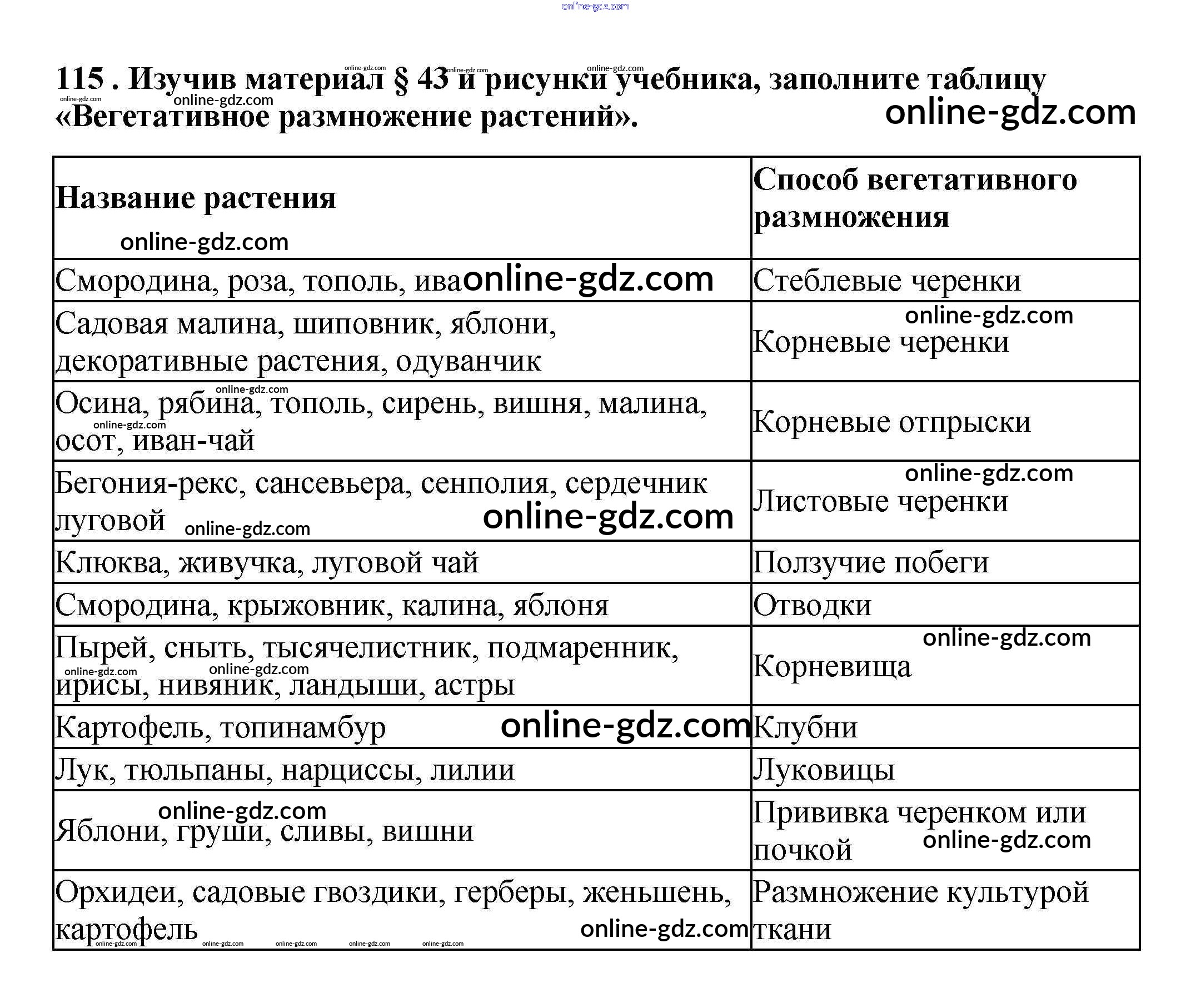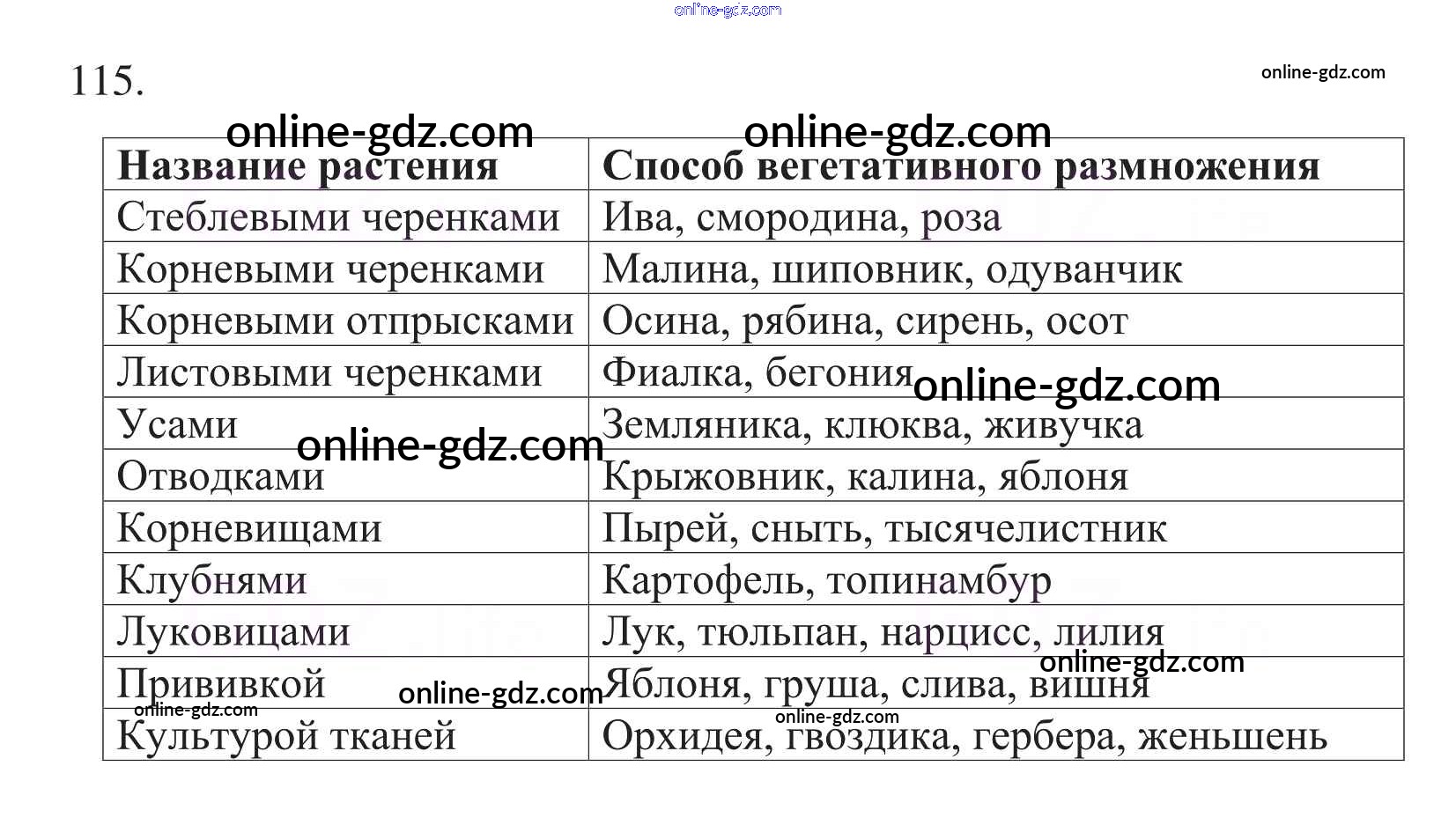 Готовые домашние задания по Биологии за 6 класс Рабочая тетрадь Пасечник УМК 2017 - Упражнения 115