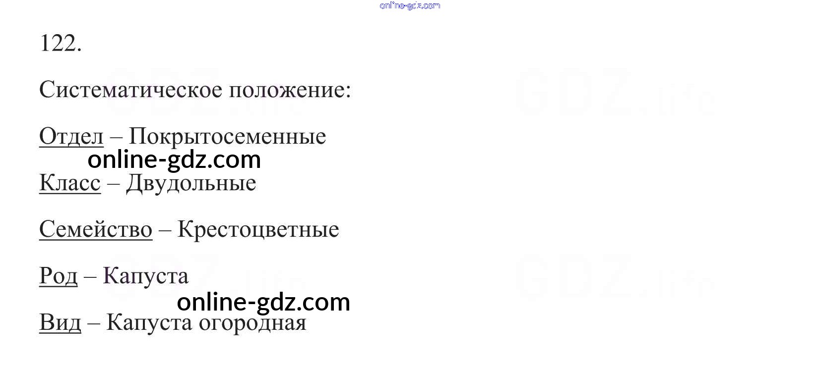 Готовые домашние задания по Биологии за 6 класс Рабочая тетрадь Пасечник УМК 2017 - Упражнения 122