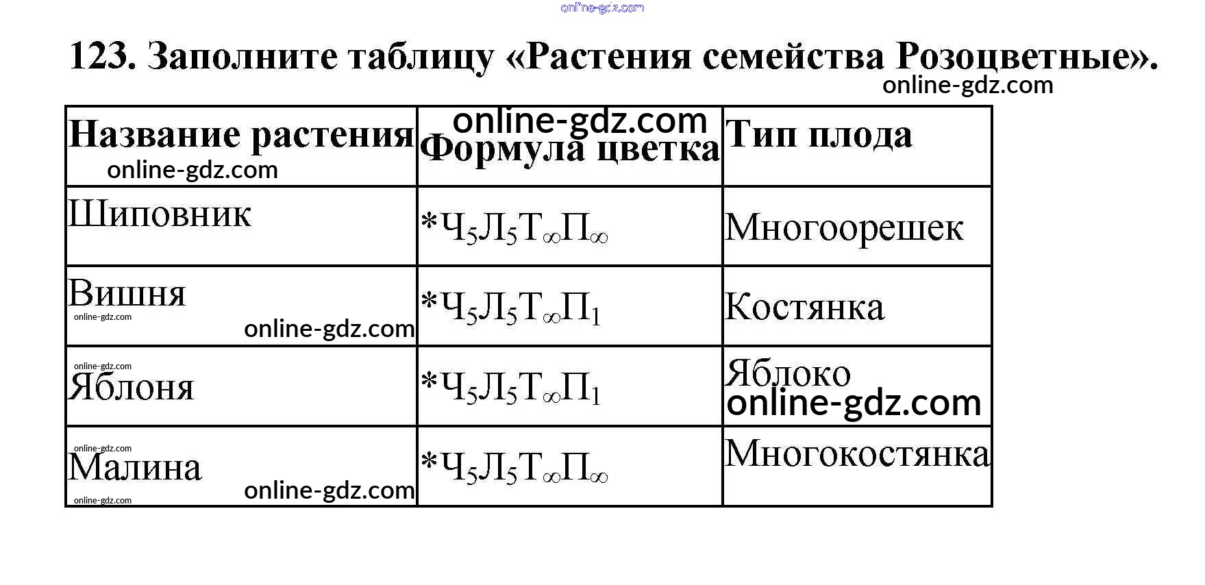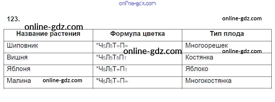 Готовые домашние задания по Биологии за 6 класс Рабочая тетрадь Пасечник УМК 2017 - Упражнения 123