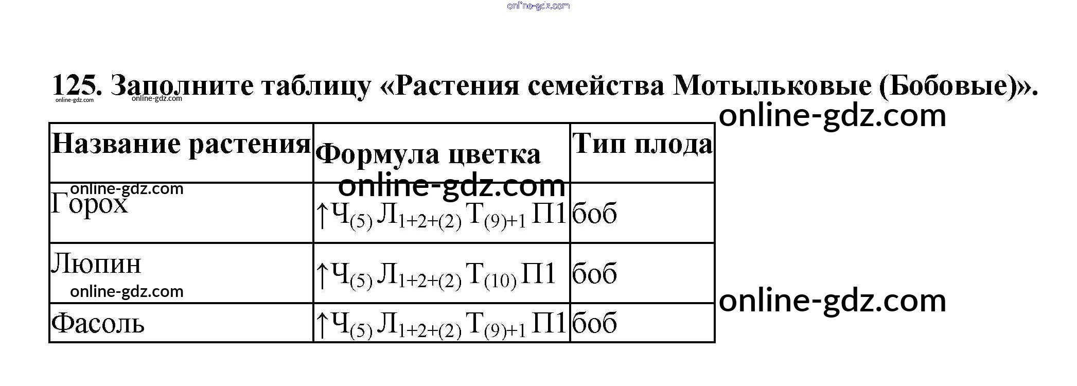 Готовые домашние задания по Биологии за 6 класс Рабочая тетрадь Пасечник УМК 2017 - Упражнения 125