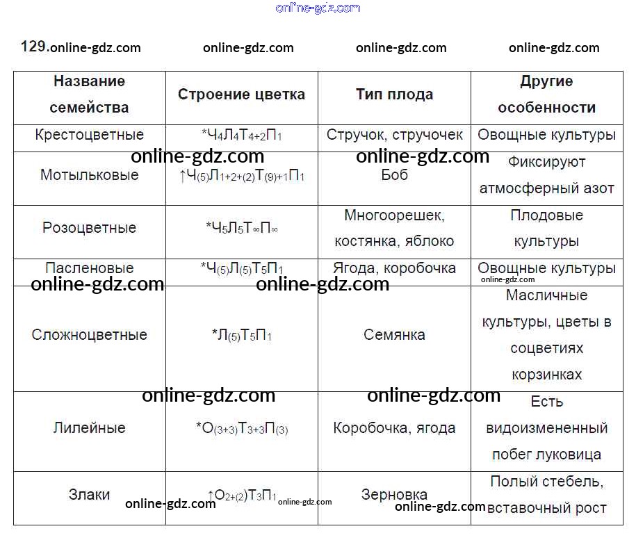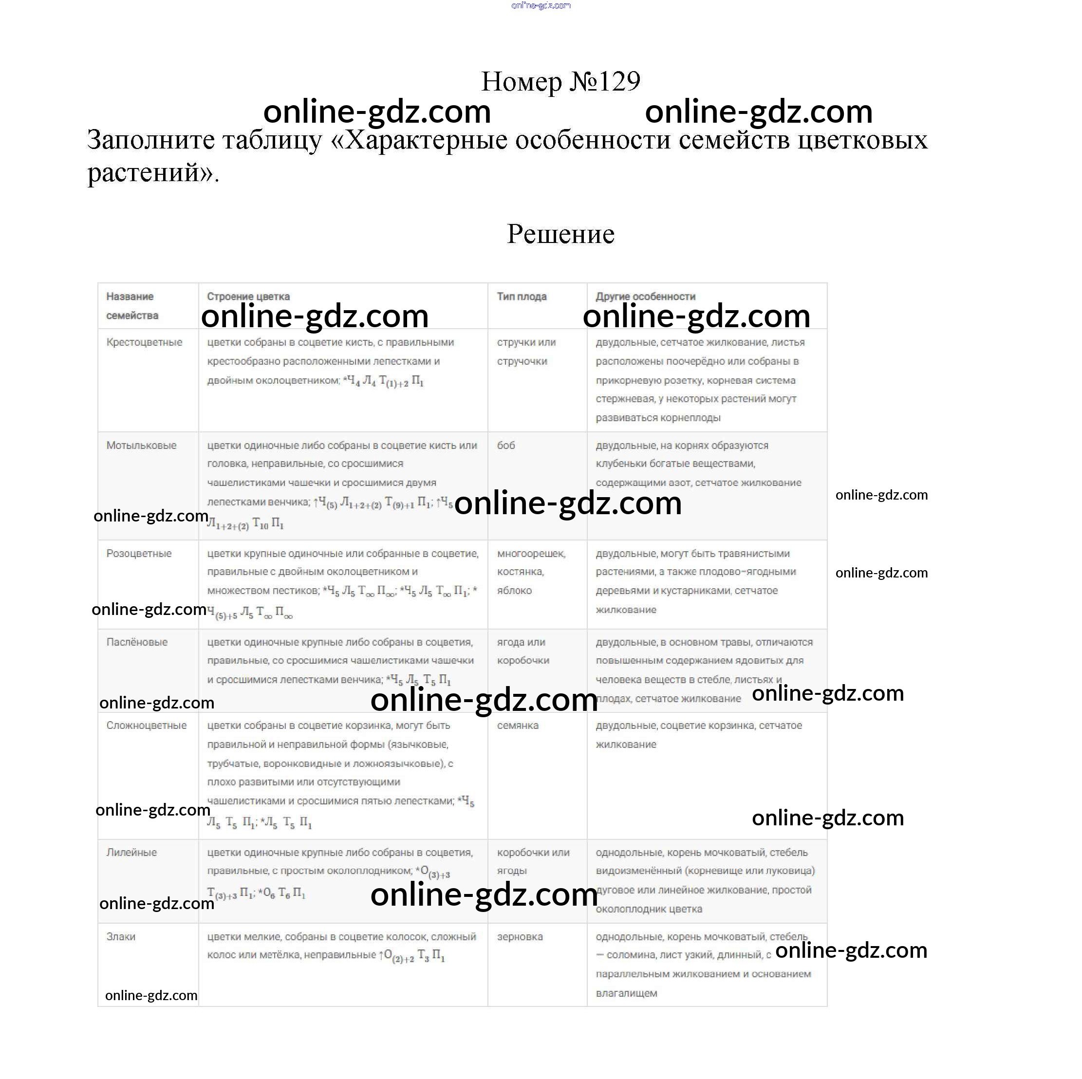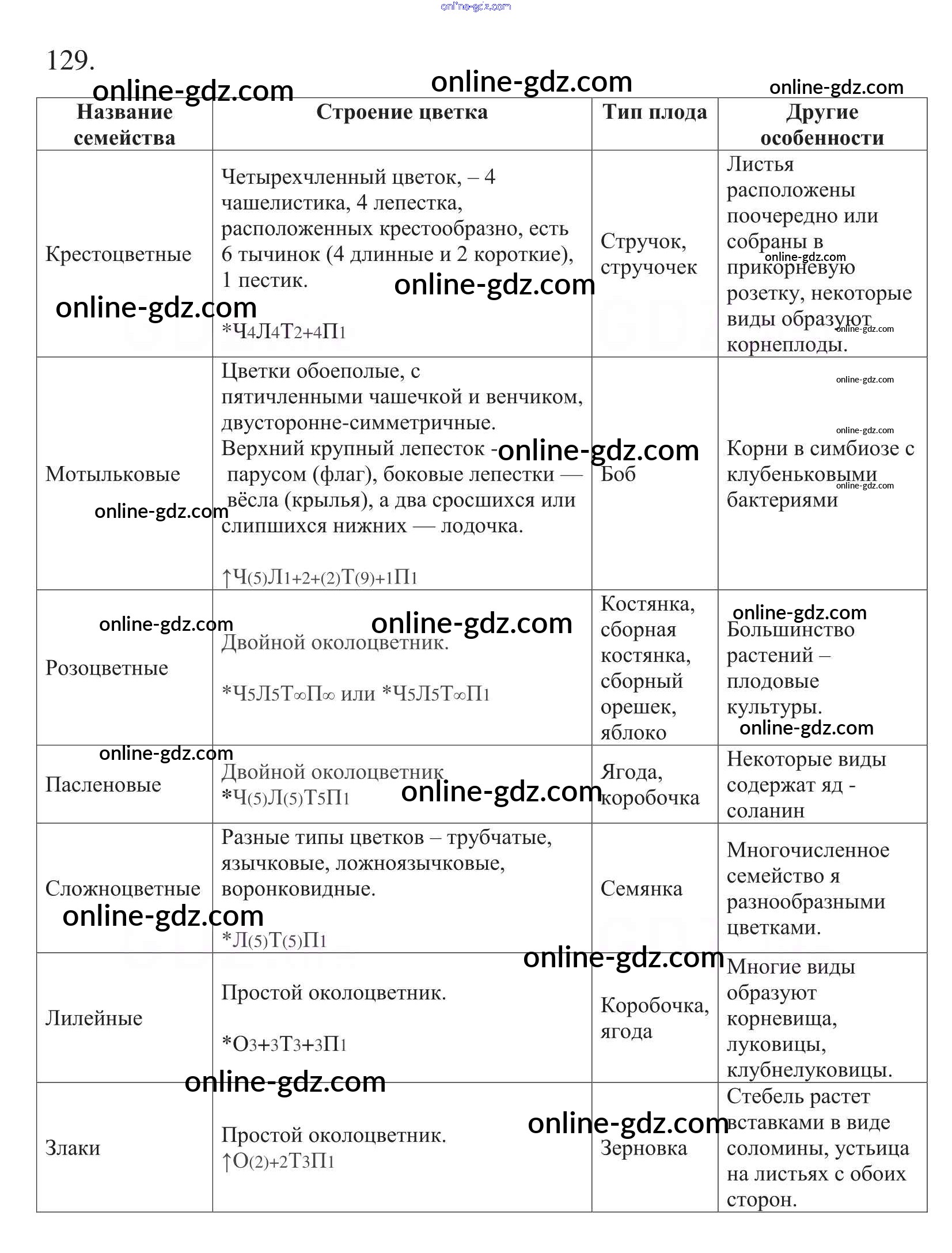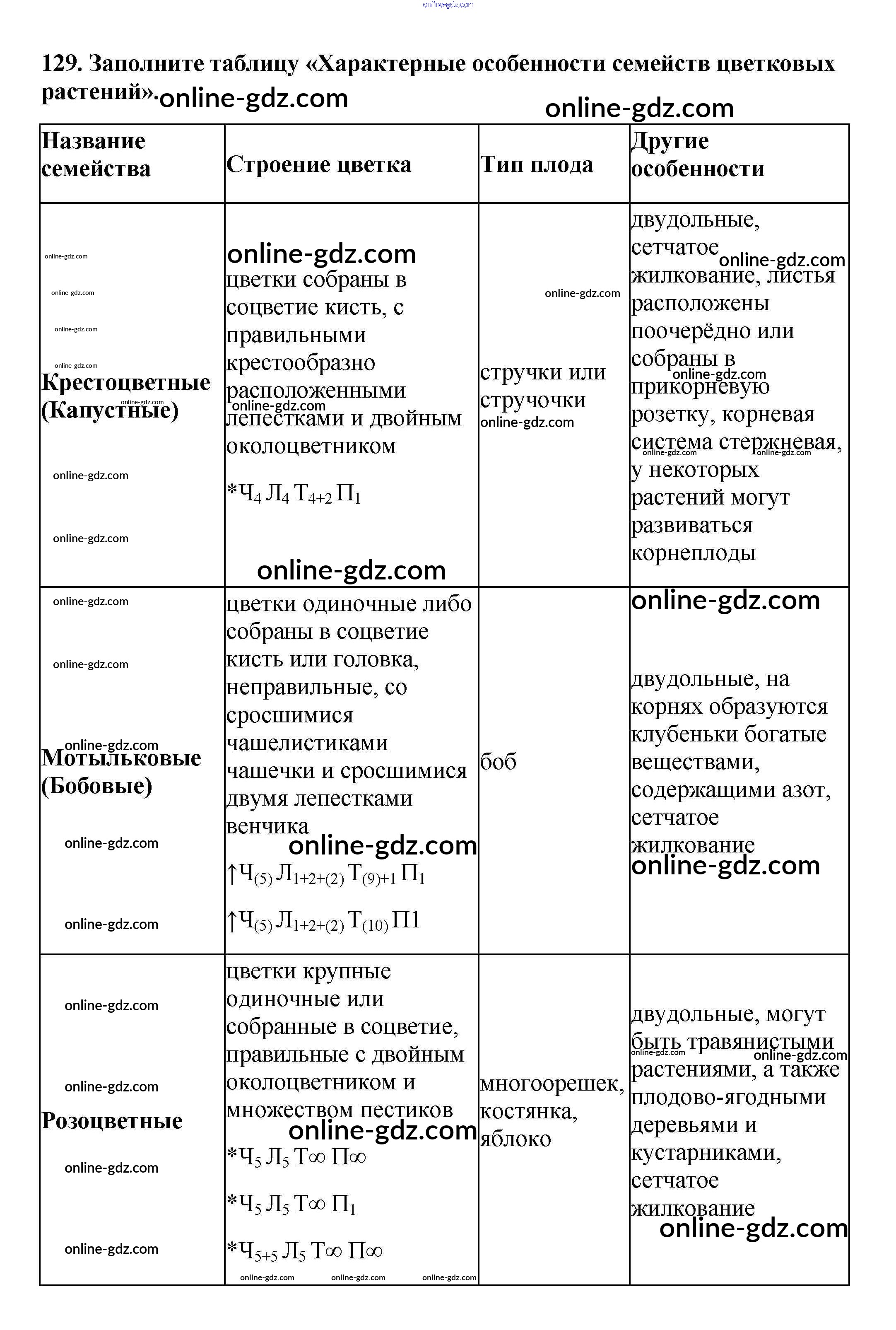 Готовые домашние задания по Биологии за 6 класс Рабочая тетрадь Пасечник УМК 2017 - Упражнения 129