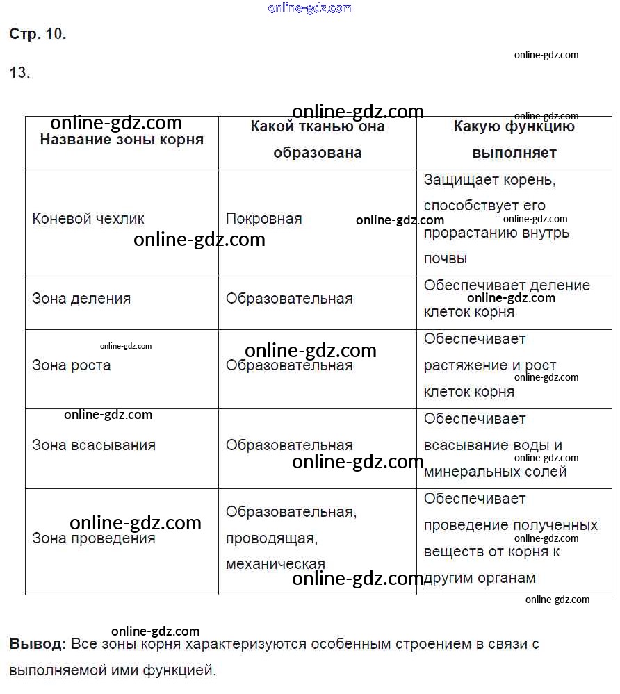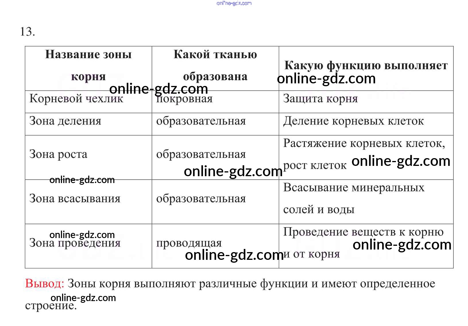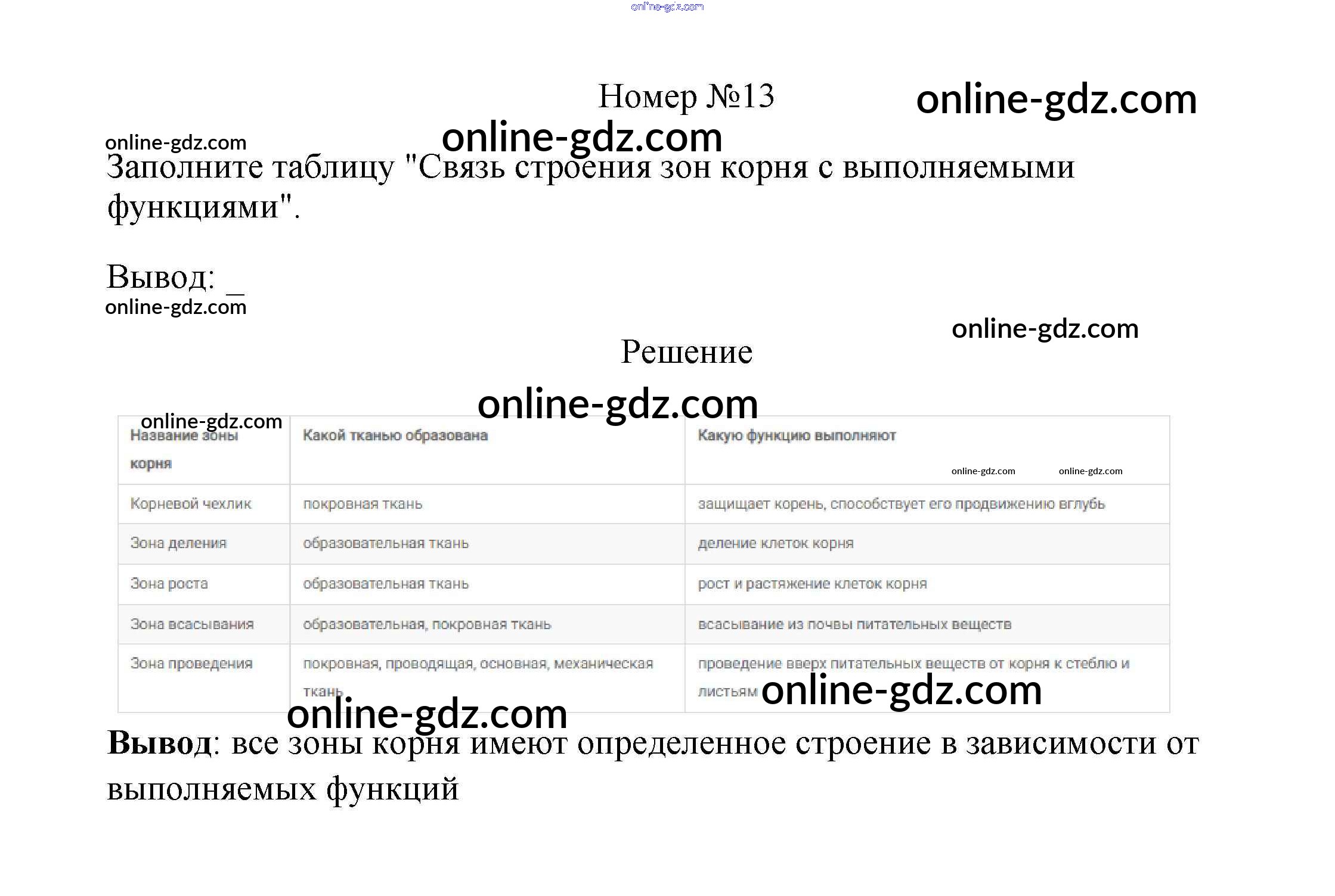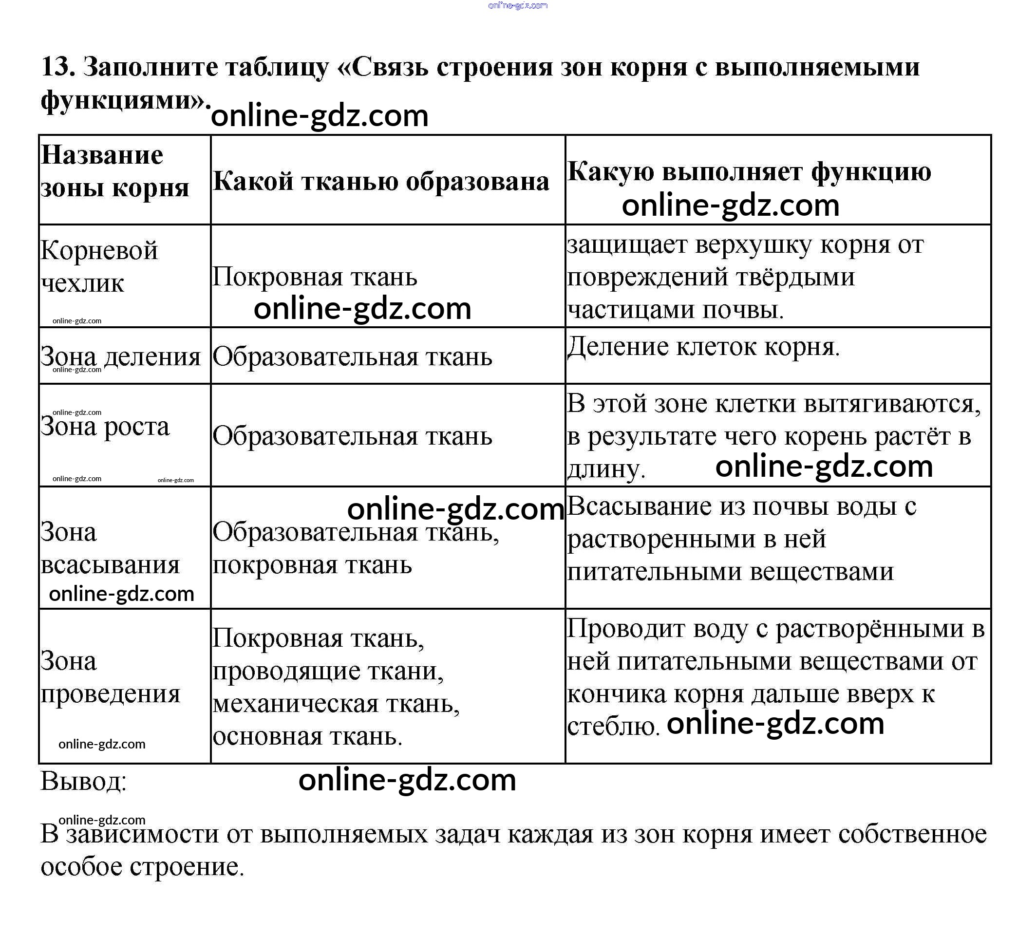 Готовые домашние задания по Биологии за 6 класс Рабочая тетрадь Пасечник УМК 2017 - Упражнения 13