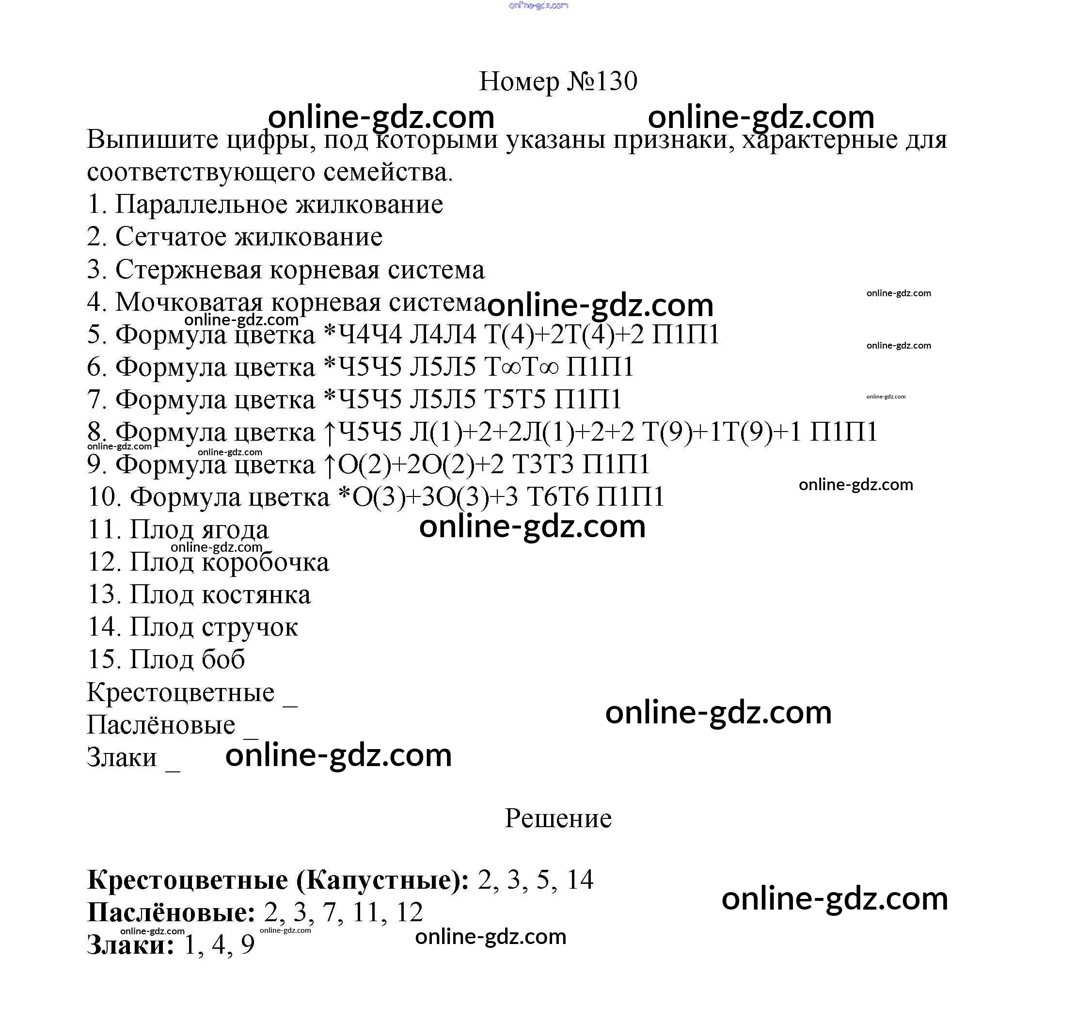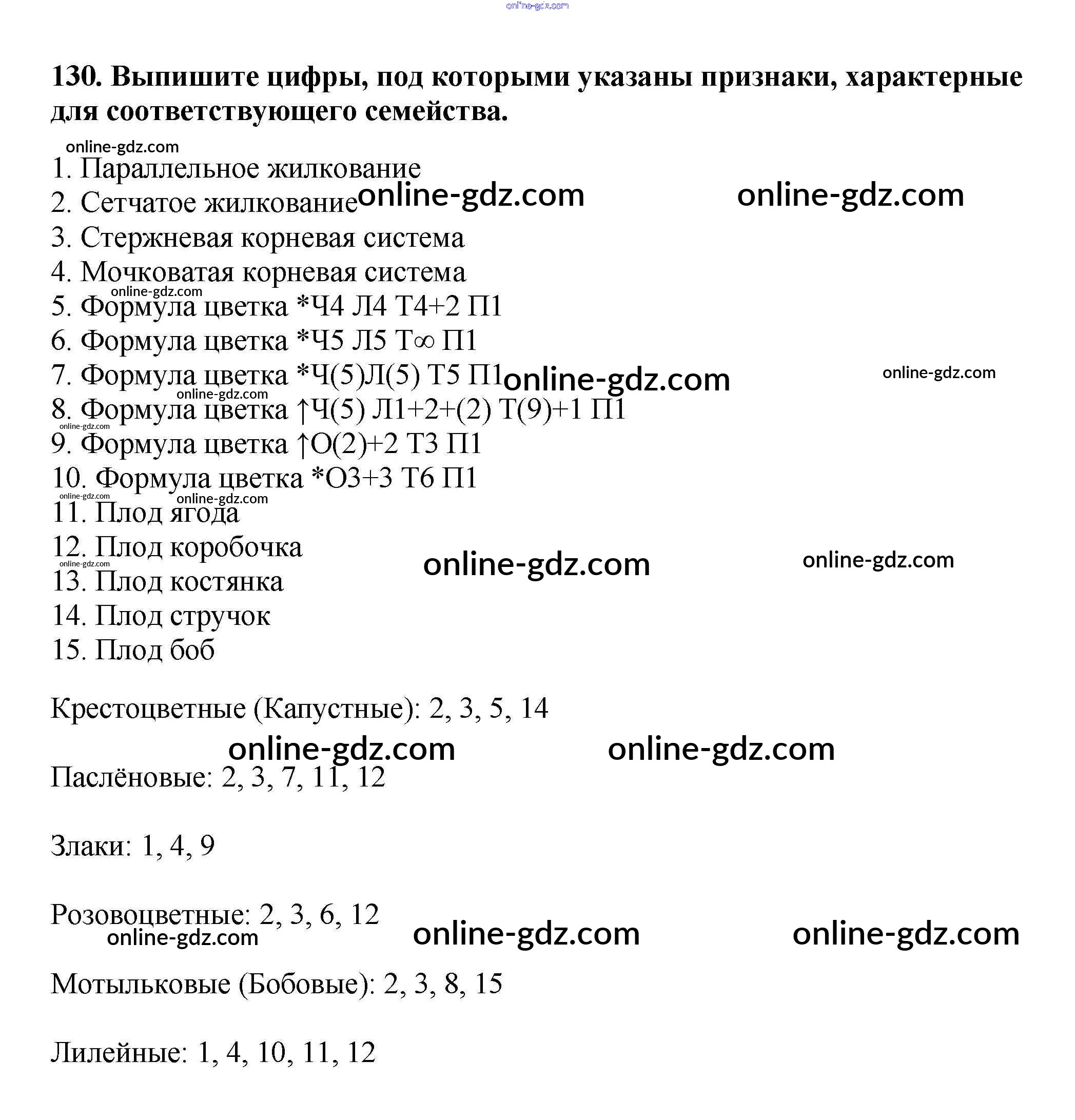 Готовые домашние задания по Биологии за 6 класс Рабочая тетрадь Пасечник УМК 2017 - Упражнения 130
