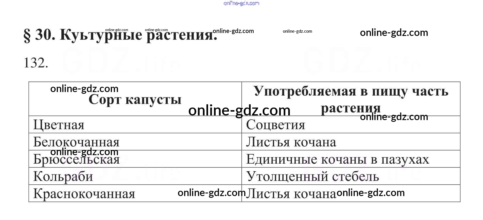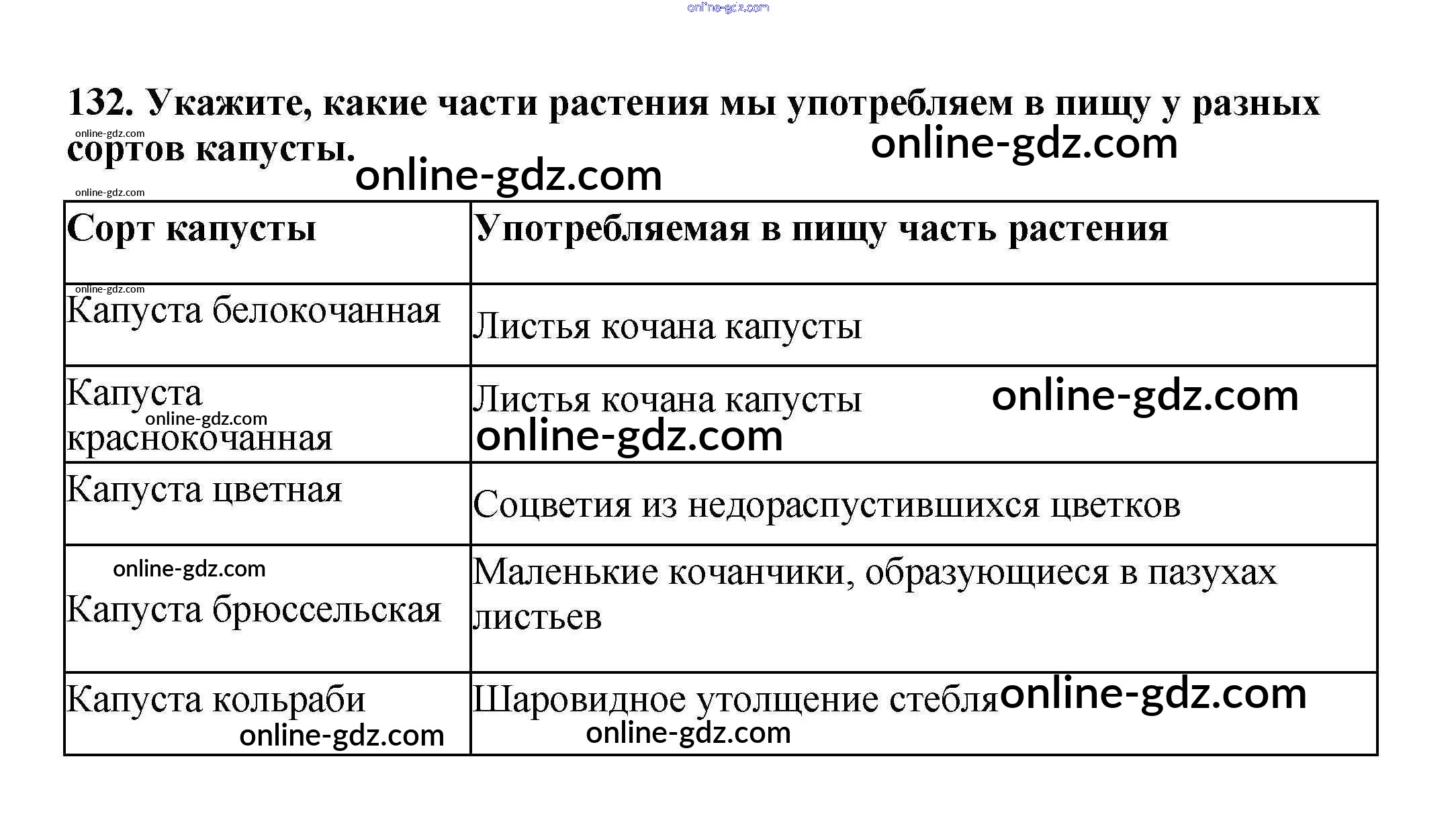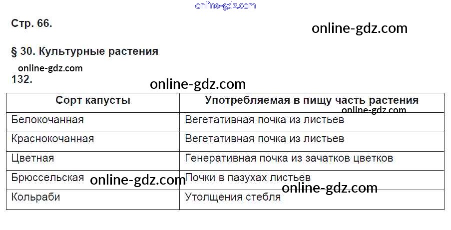 Готовые домашние задания по Биологии за 6 класс Рабочая тетрадь Пасечник УМК 2017 - Упражнения 132