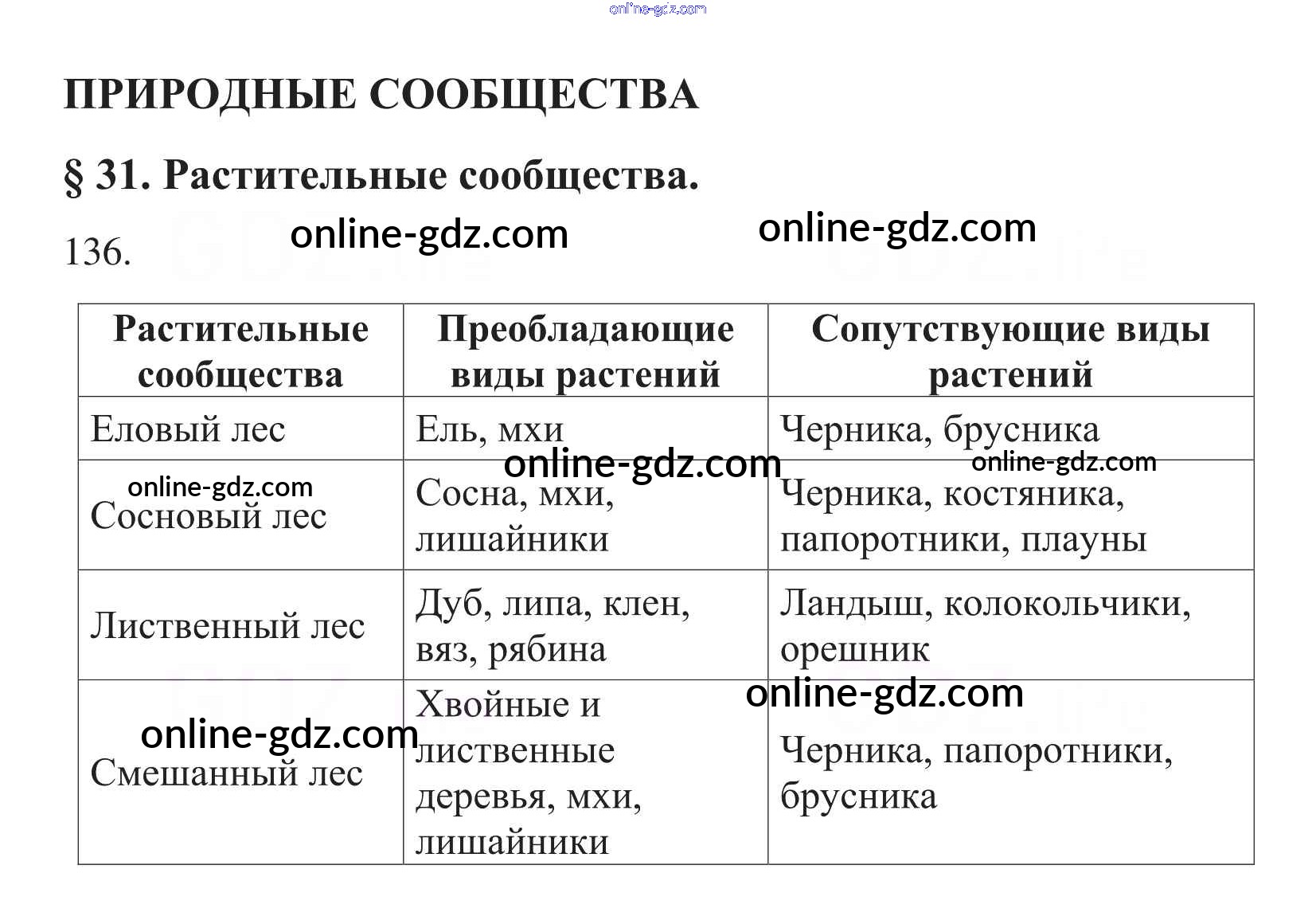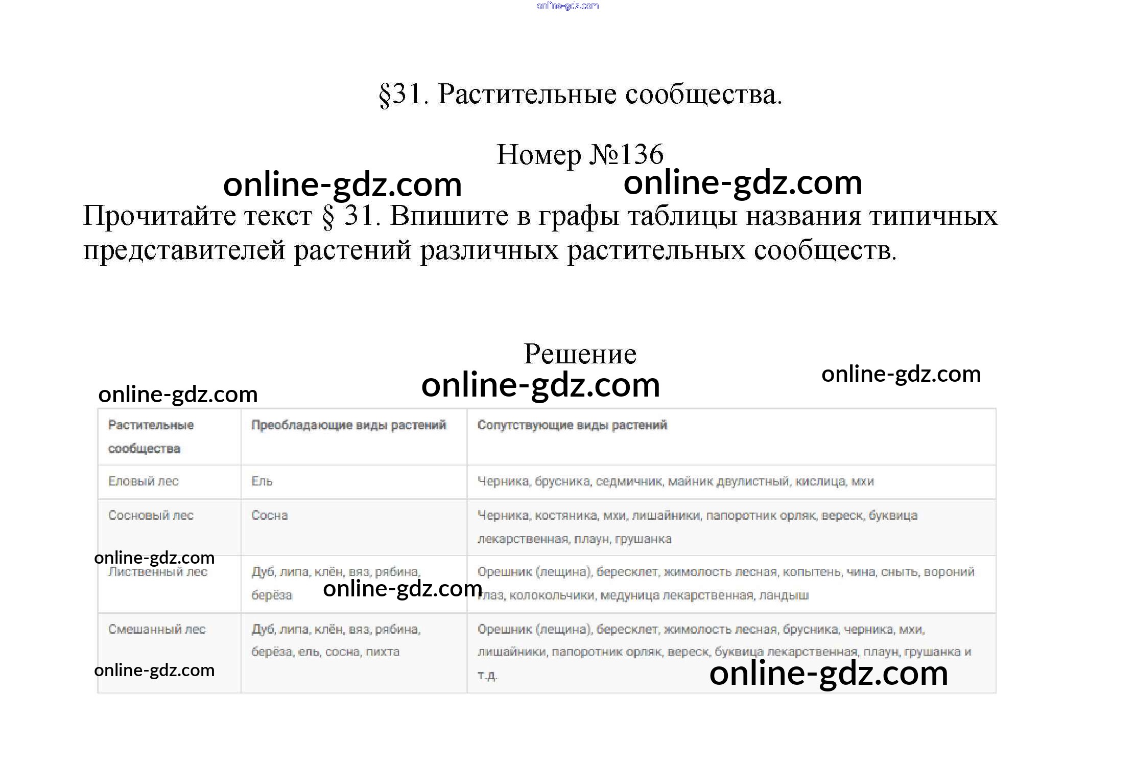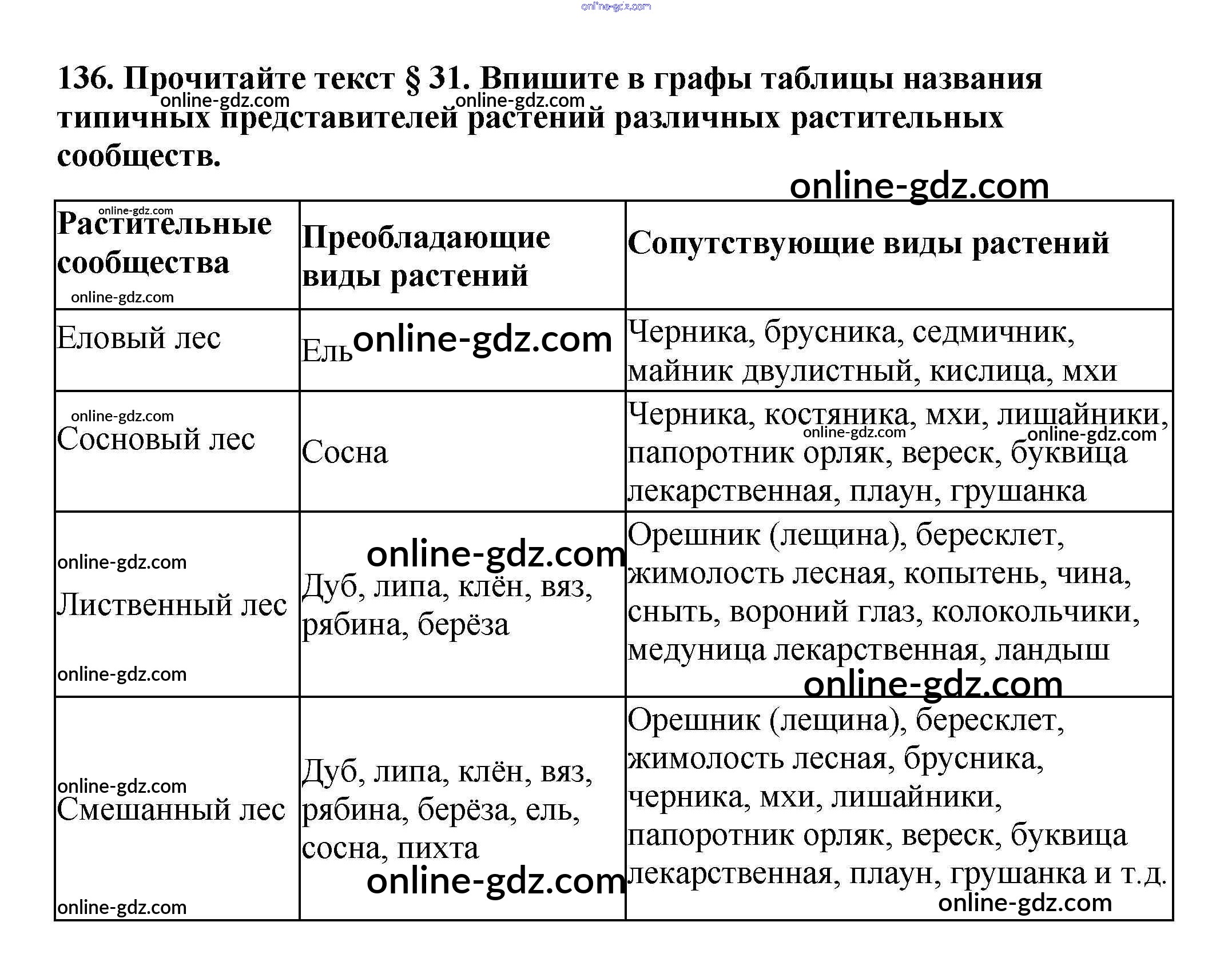 Готовые домашние задания по Биологии за 6 класс Рабочая тетрадь Пасечник УМК 2017 - Упражнения 136