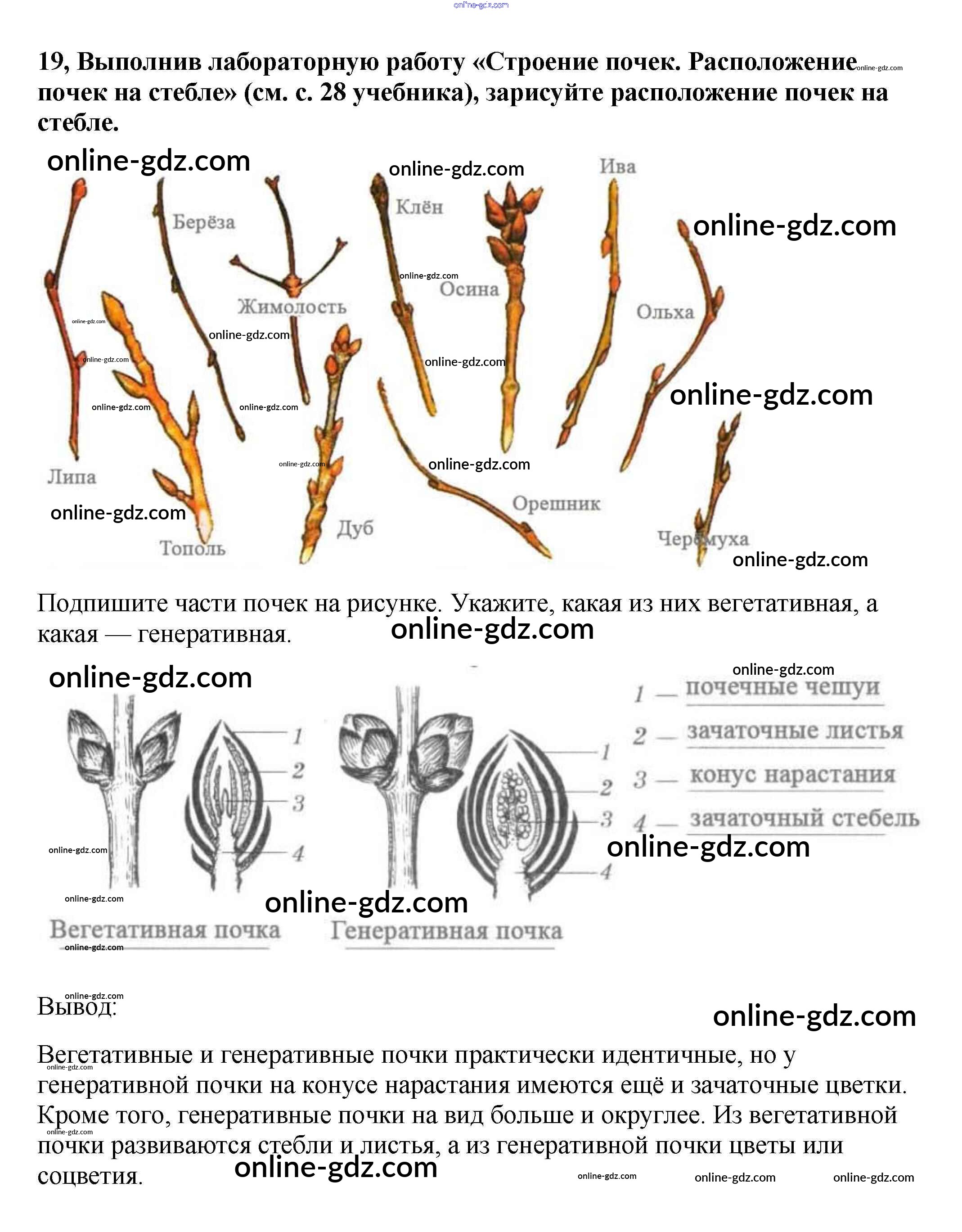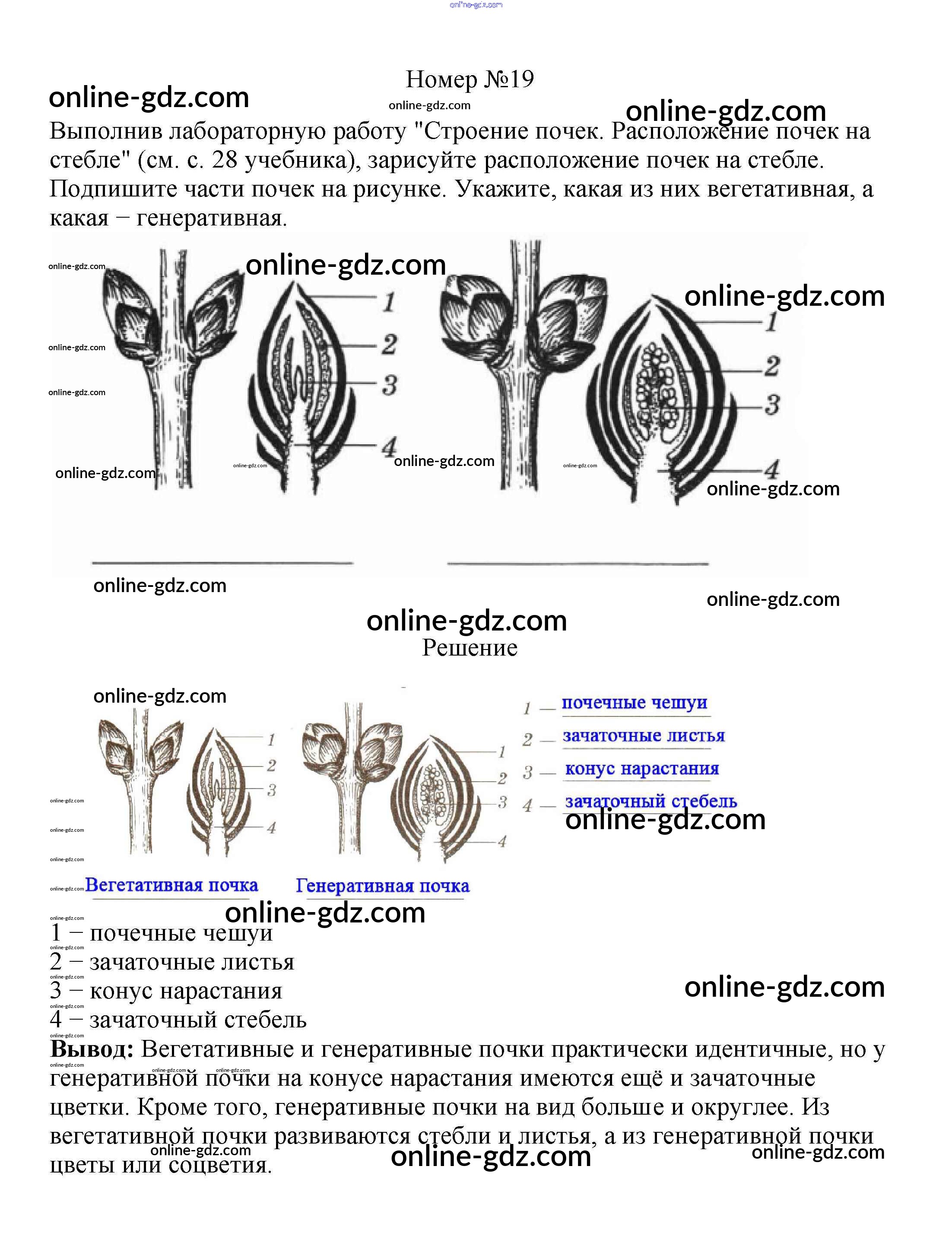 Готовые домашние задания по Биологии за 6 класс Рабочая тетрадь Пасечник УМК 2017 - Упражнения 19