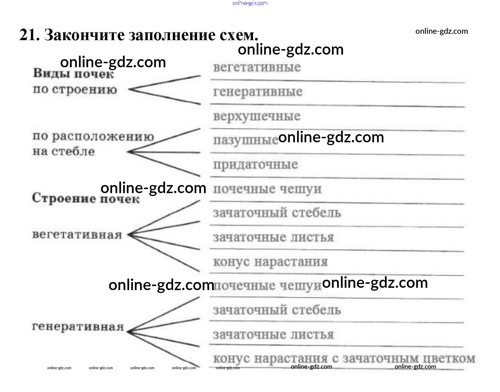Готовые домашние задания по Биологии за 6 класс Рабочая тетрадь Пасечник УМК 2017 - Упражнения 21