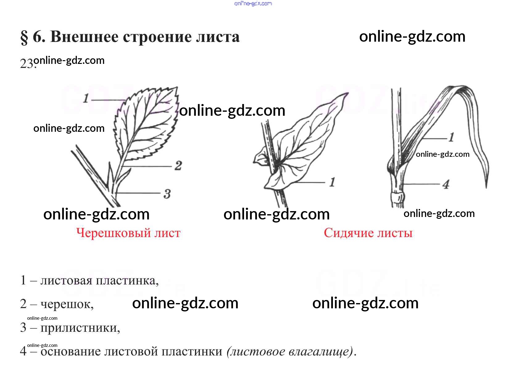 Готовые домашние задания по Биологии за 6 класс Рабочая тетрадь Пасечник УМК 2017 - Упражнения 23