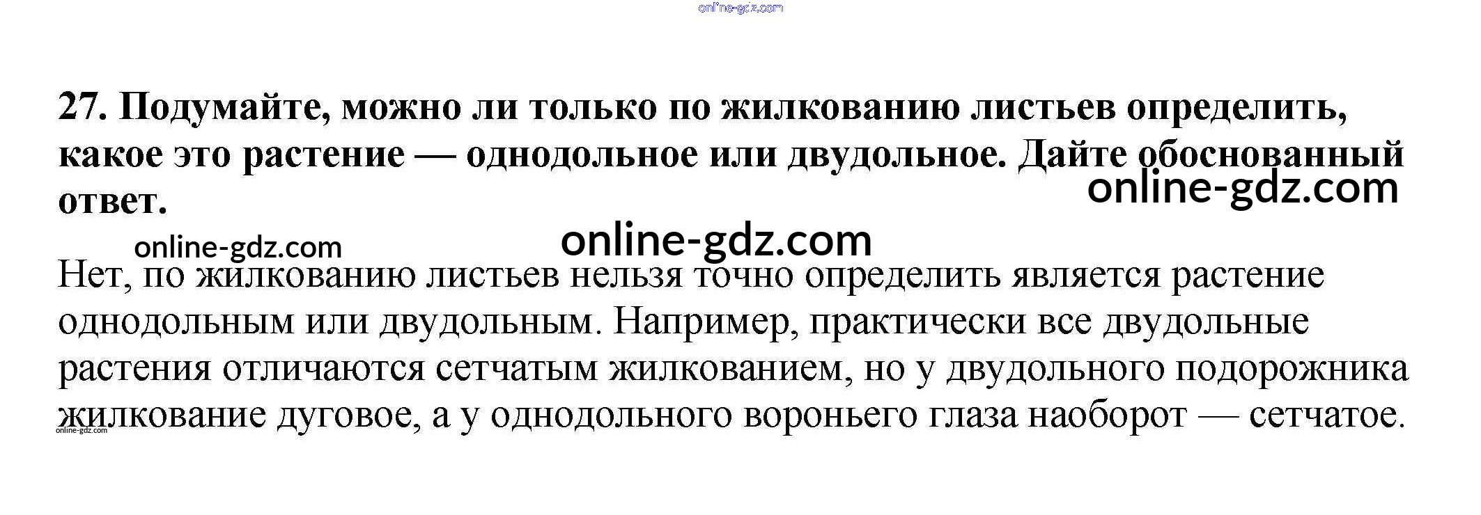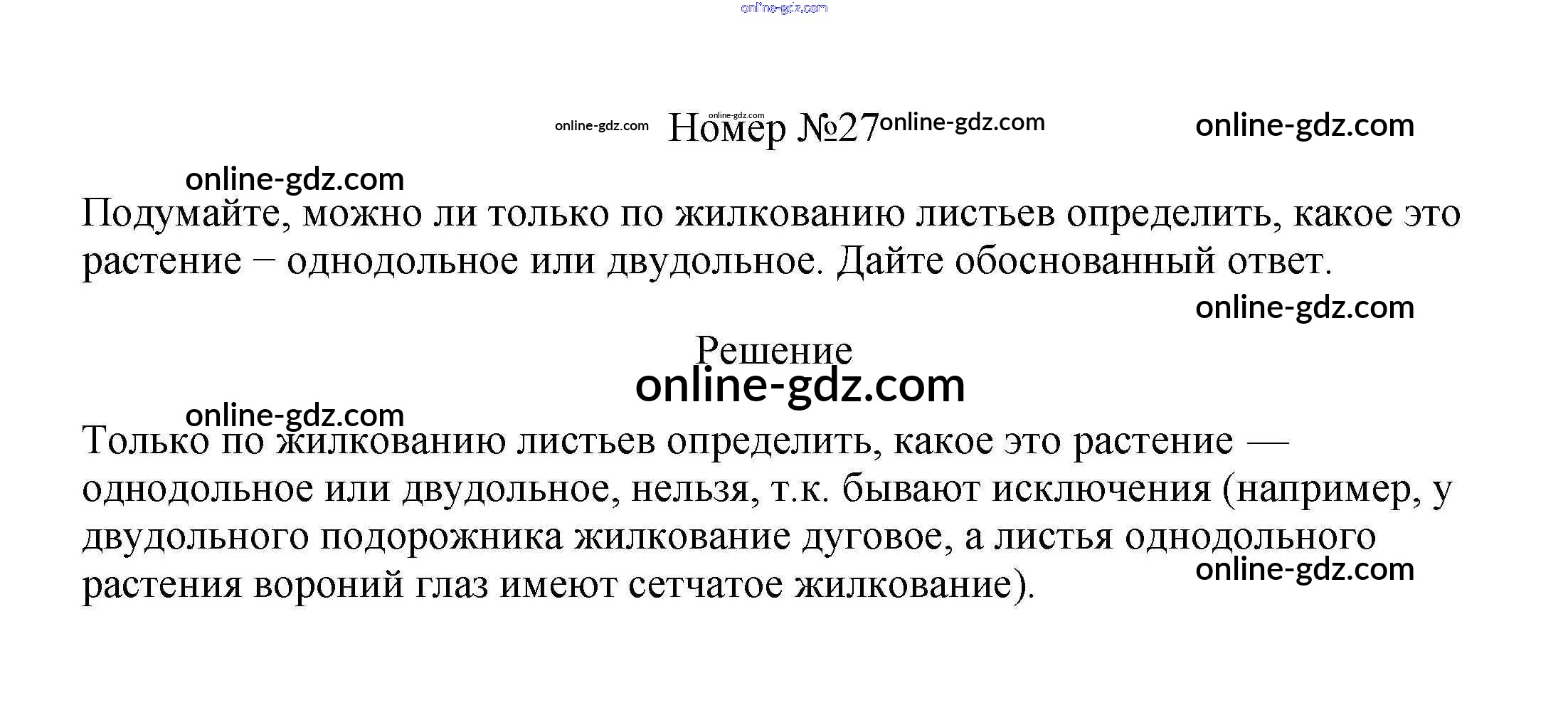 Готовые домашние задания по Биологии за 6 класс Рабочая тетрадь Пасечник УМК 2017 - Упражнения 27