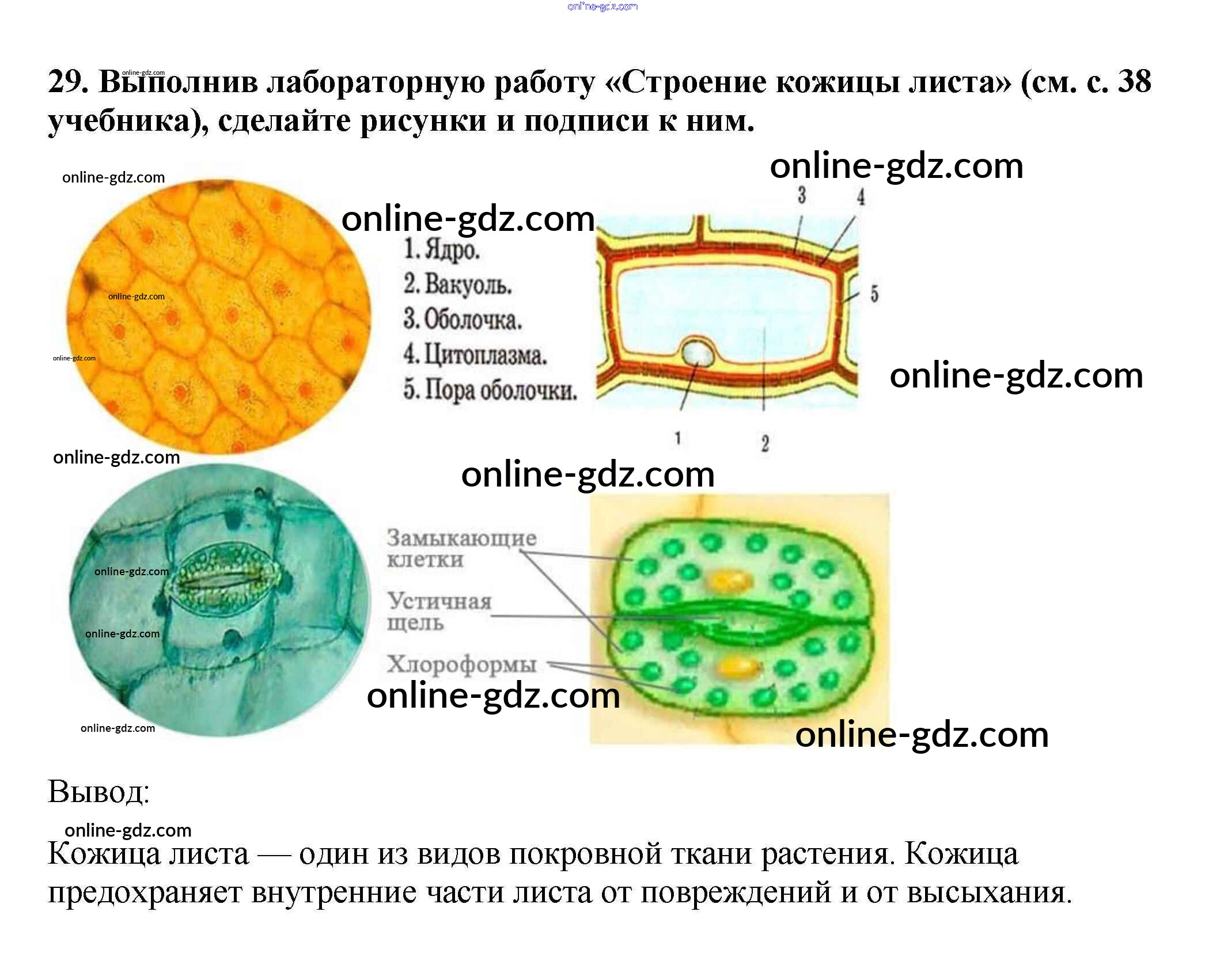Готовые домашние задания по Биологии за 6 класс Рабочая тетрадь Пасечник УМК 2017 - Упражнения 29