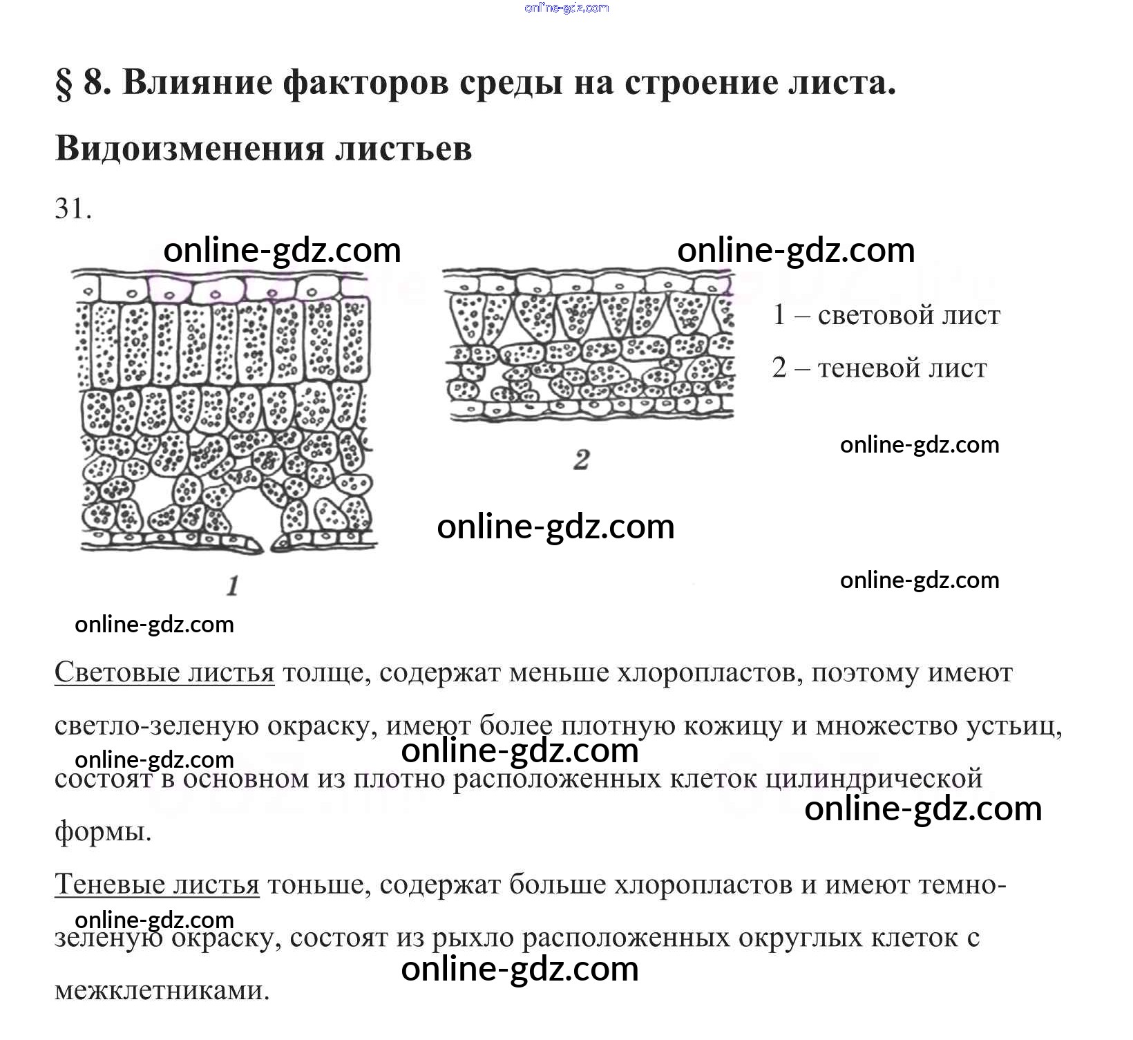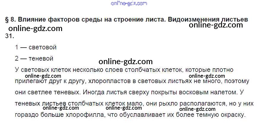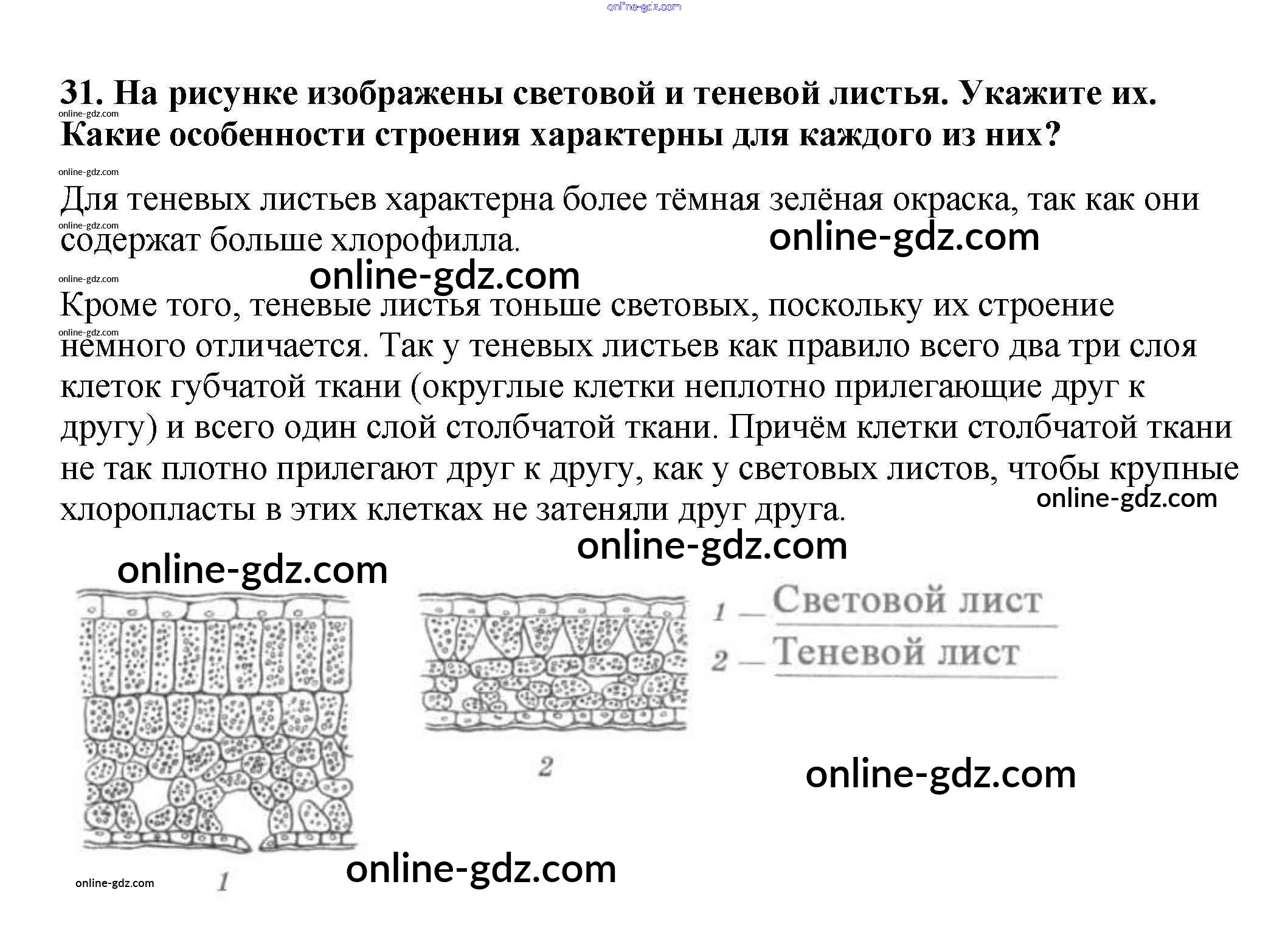 Готовые домашние задания по Биологии за 6 класс Рабочая тетрадь Пасечник УМК 2017 - Упражнения 31