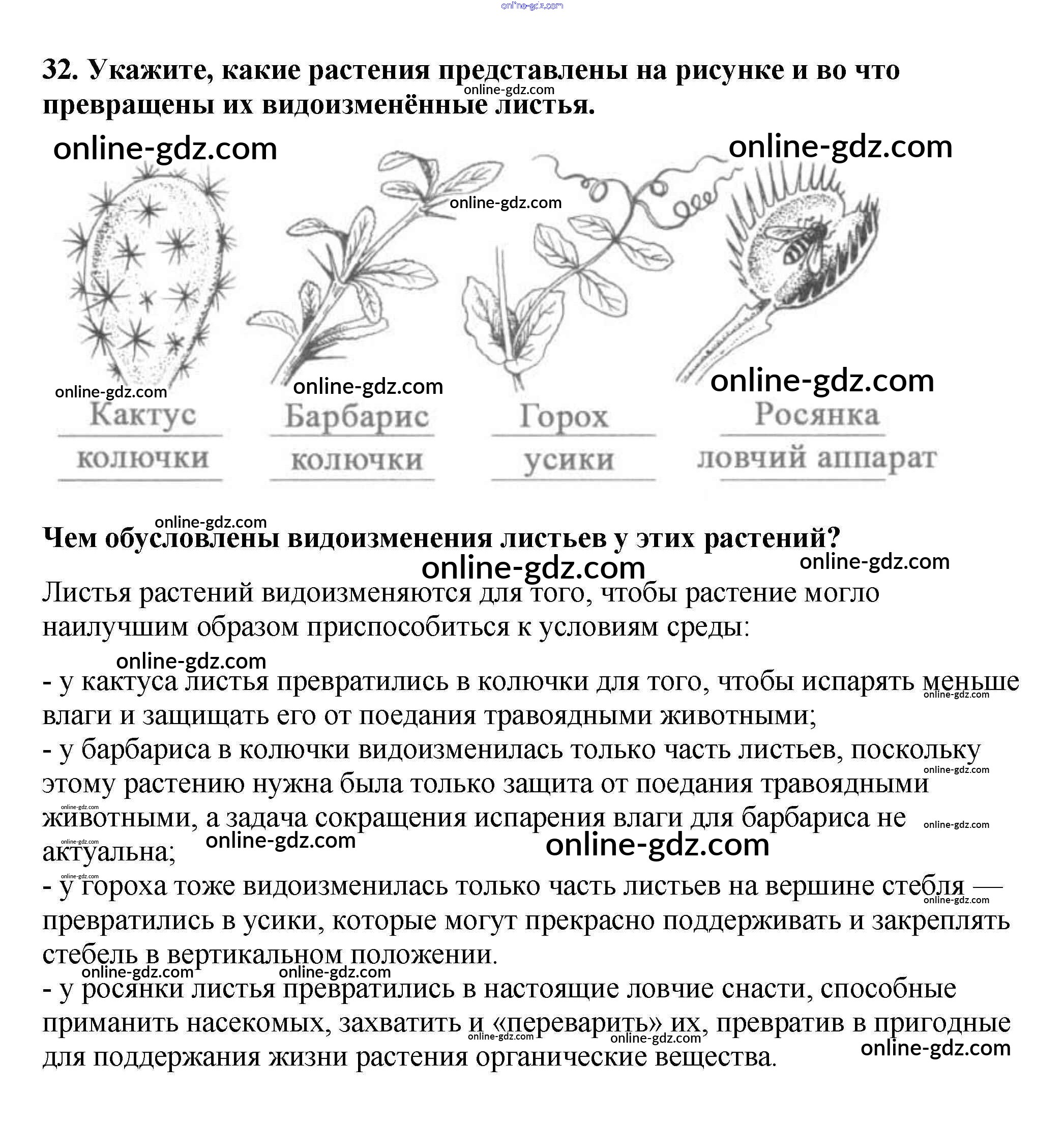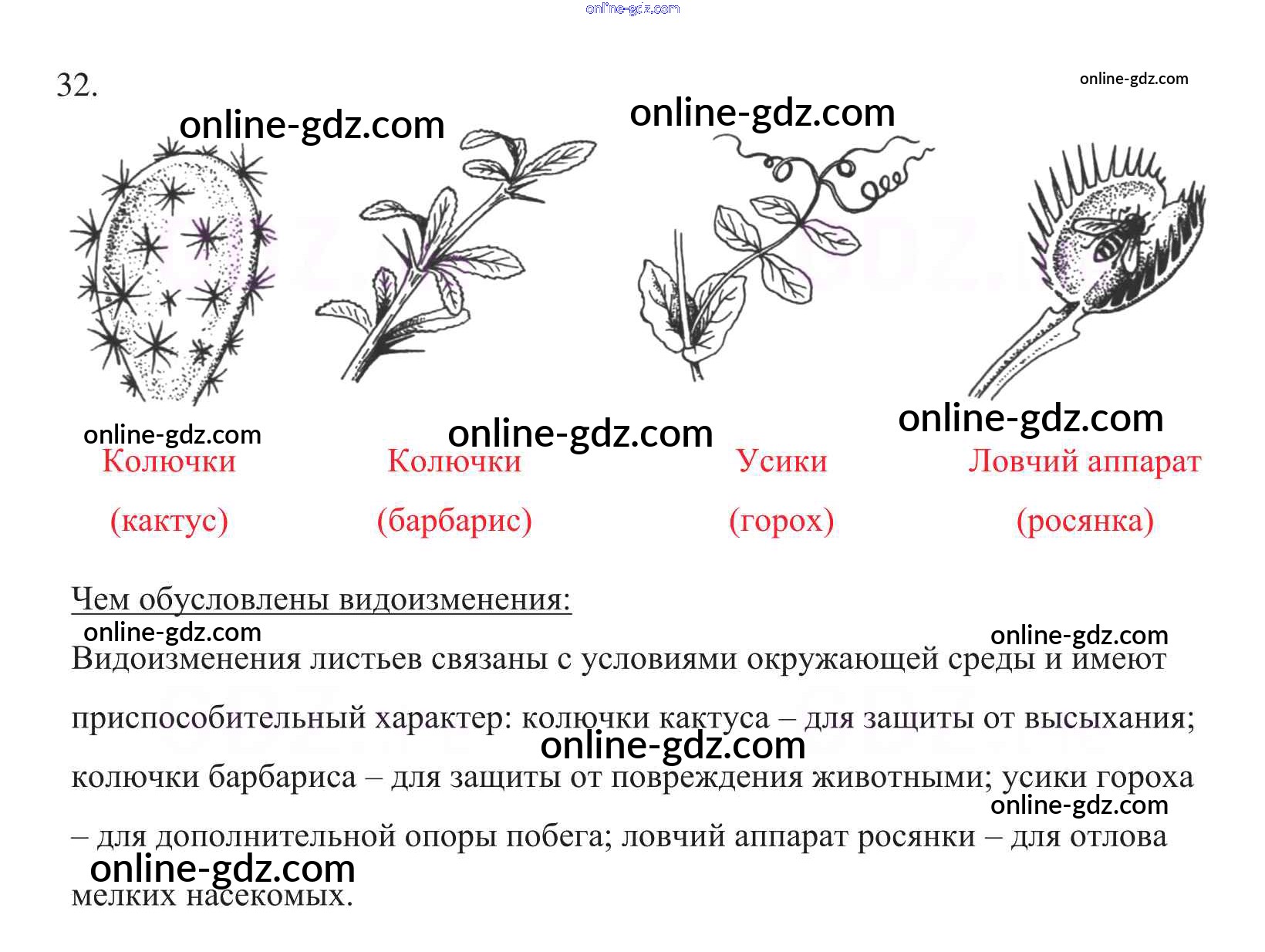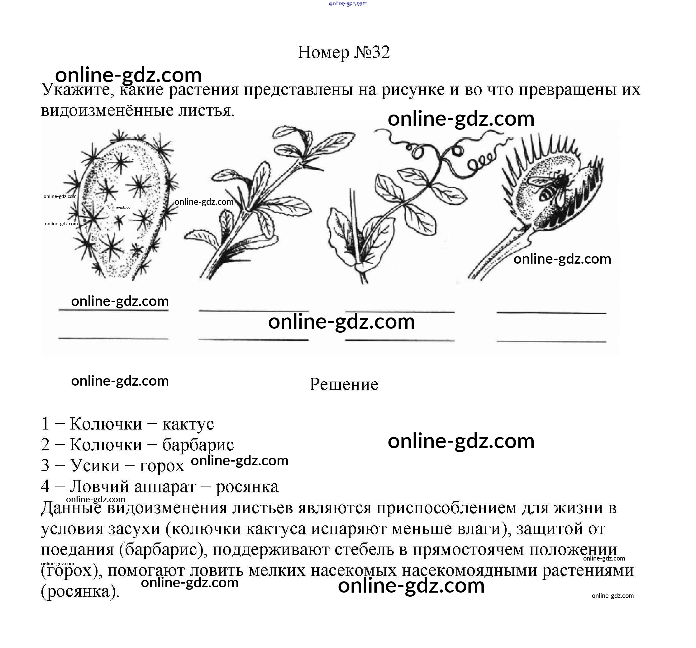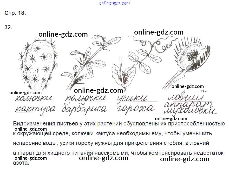Готовые домашние задания по Биологии за 6 класс Рабочая тетрадь Пасечник УМК 2017 - Упражнения 32
