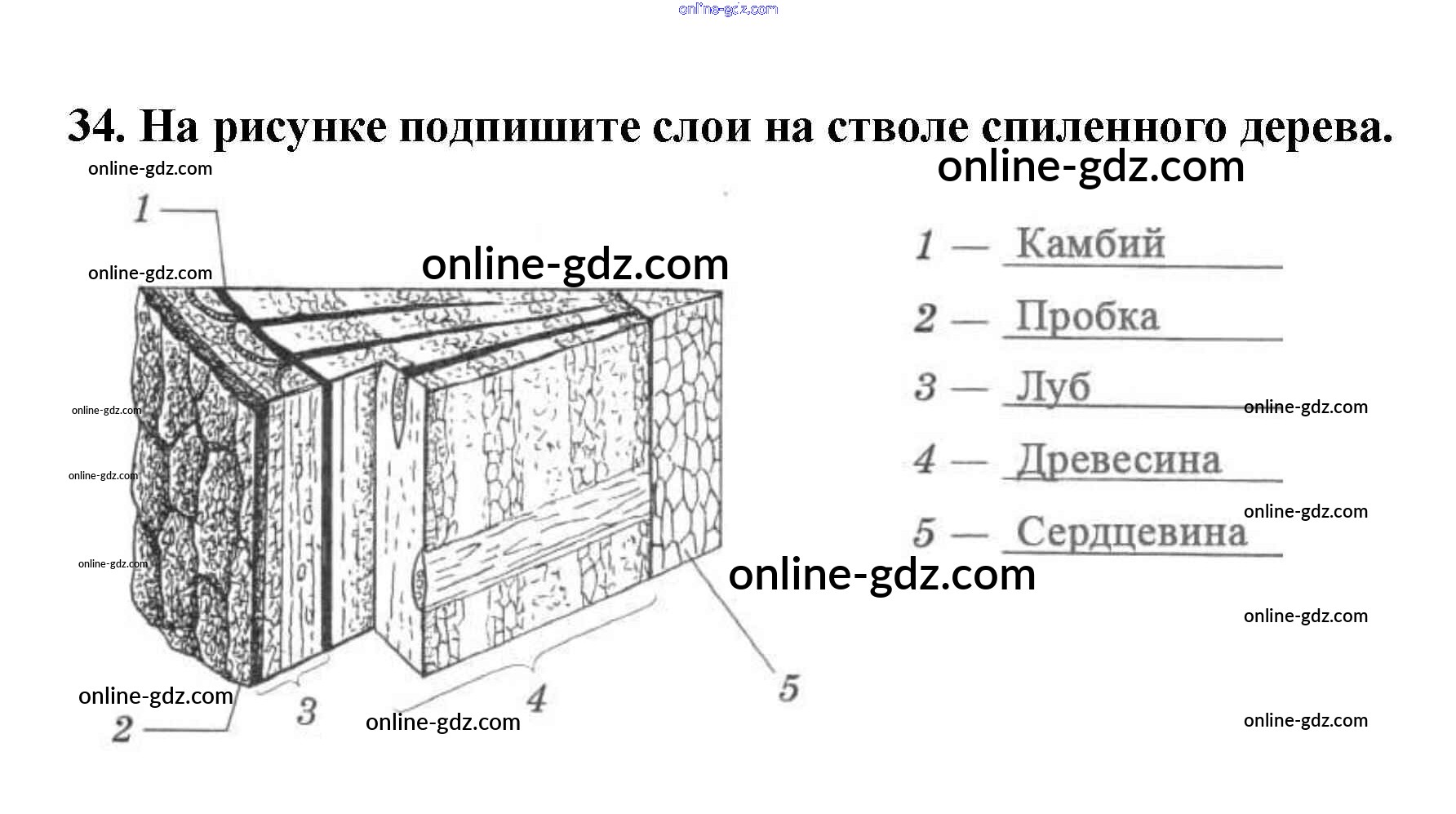 Готовые домашние задания по Биологии за 6 класс Рабочая тетрадь Пасечник УМК 2017 - Упражнения 34