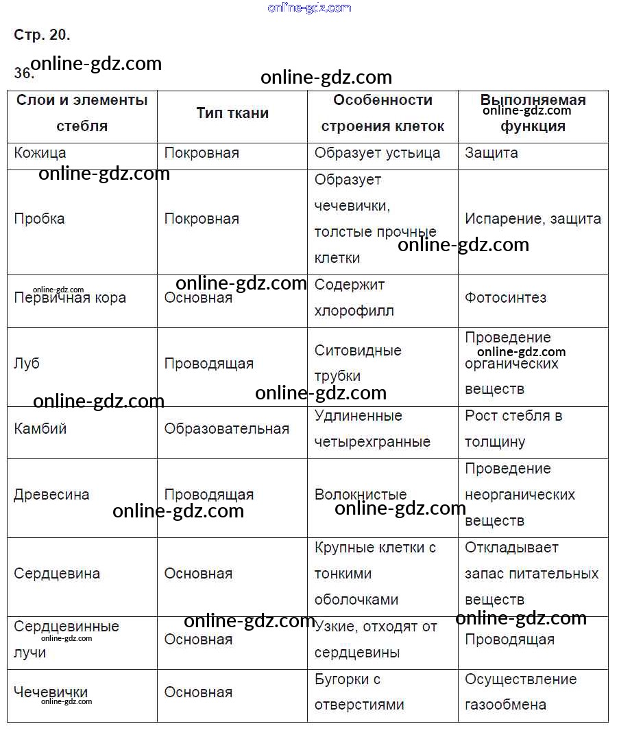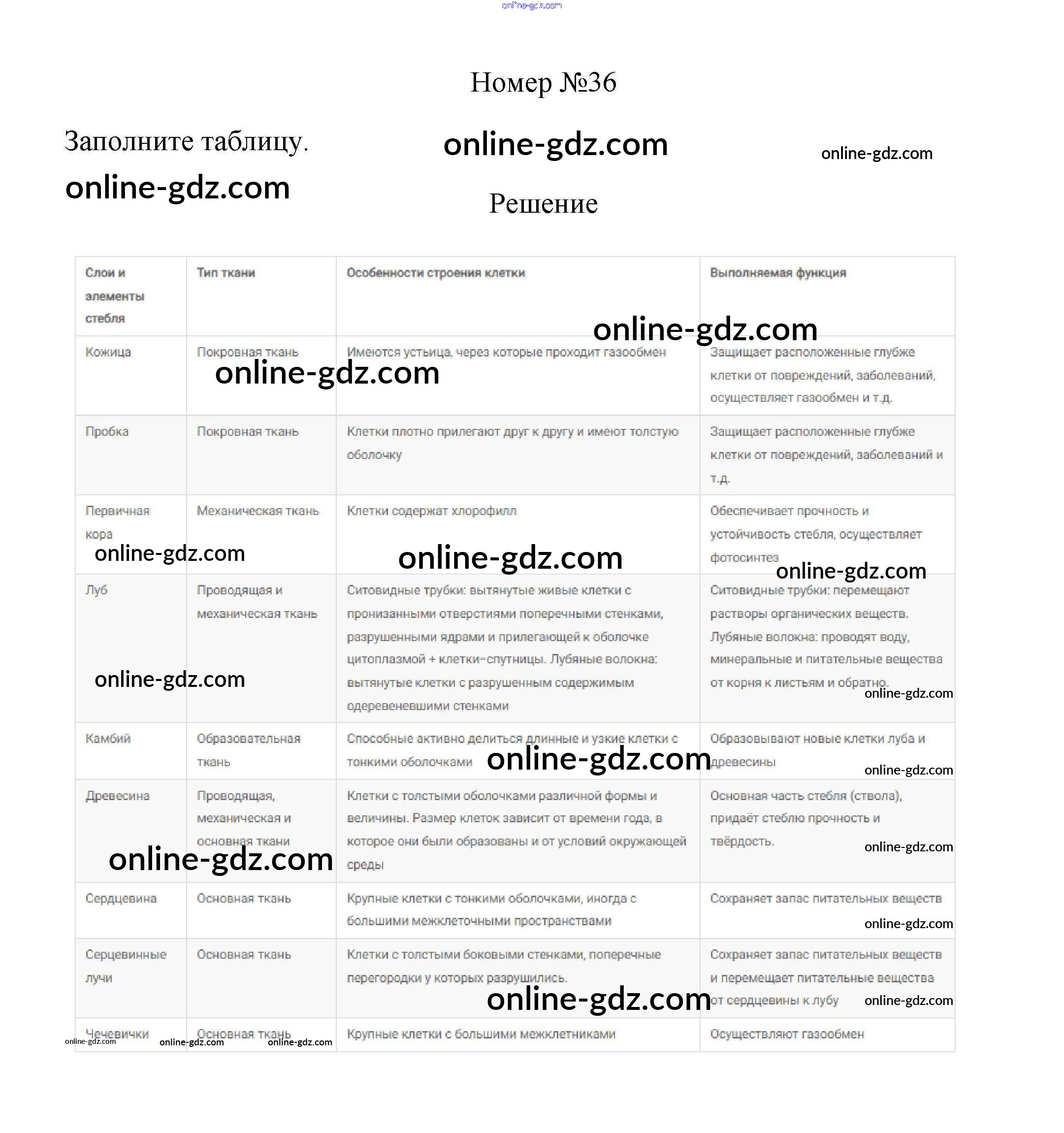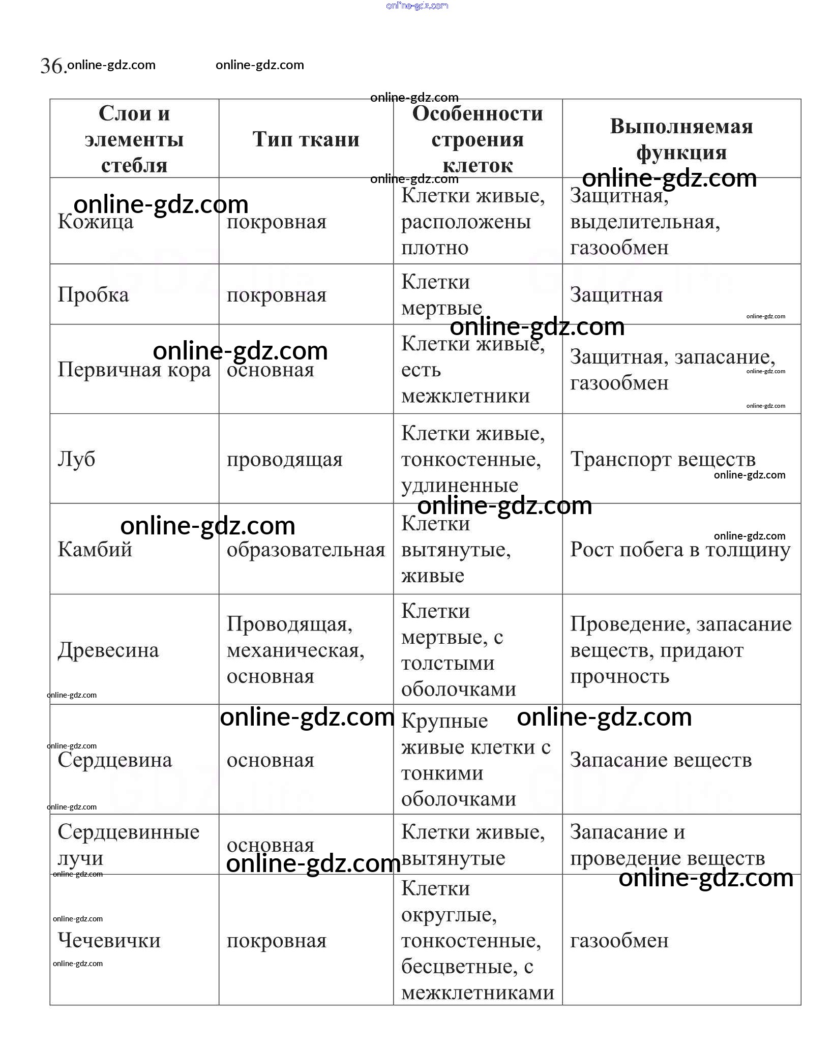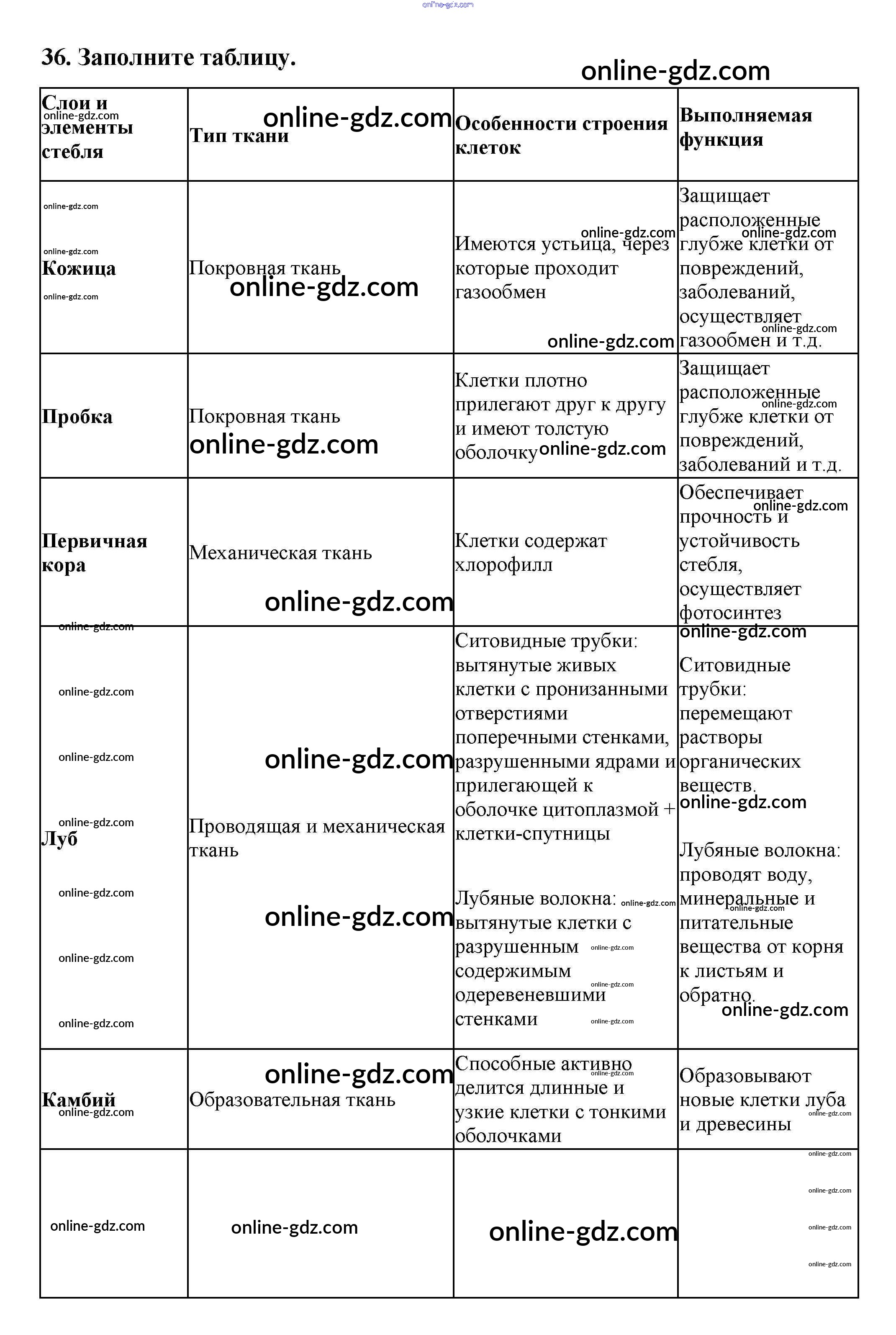Готовые домашние задания по Биологии за 6 класс Рабочая тетрадь Пасечник УМК 2017 - Упражнения 36