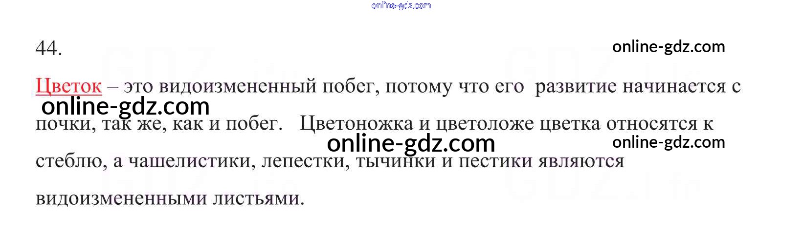 Готовые домашние задания по Биологии за 6 класс Рабочая тетрадь Пасечник УМК 2017 - Упражнения 44
