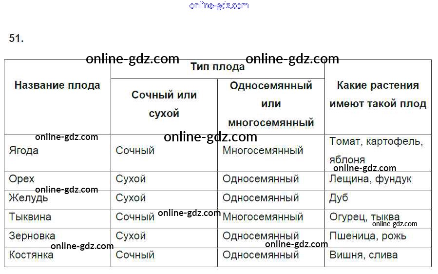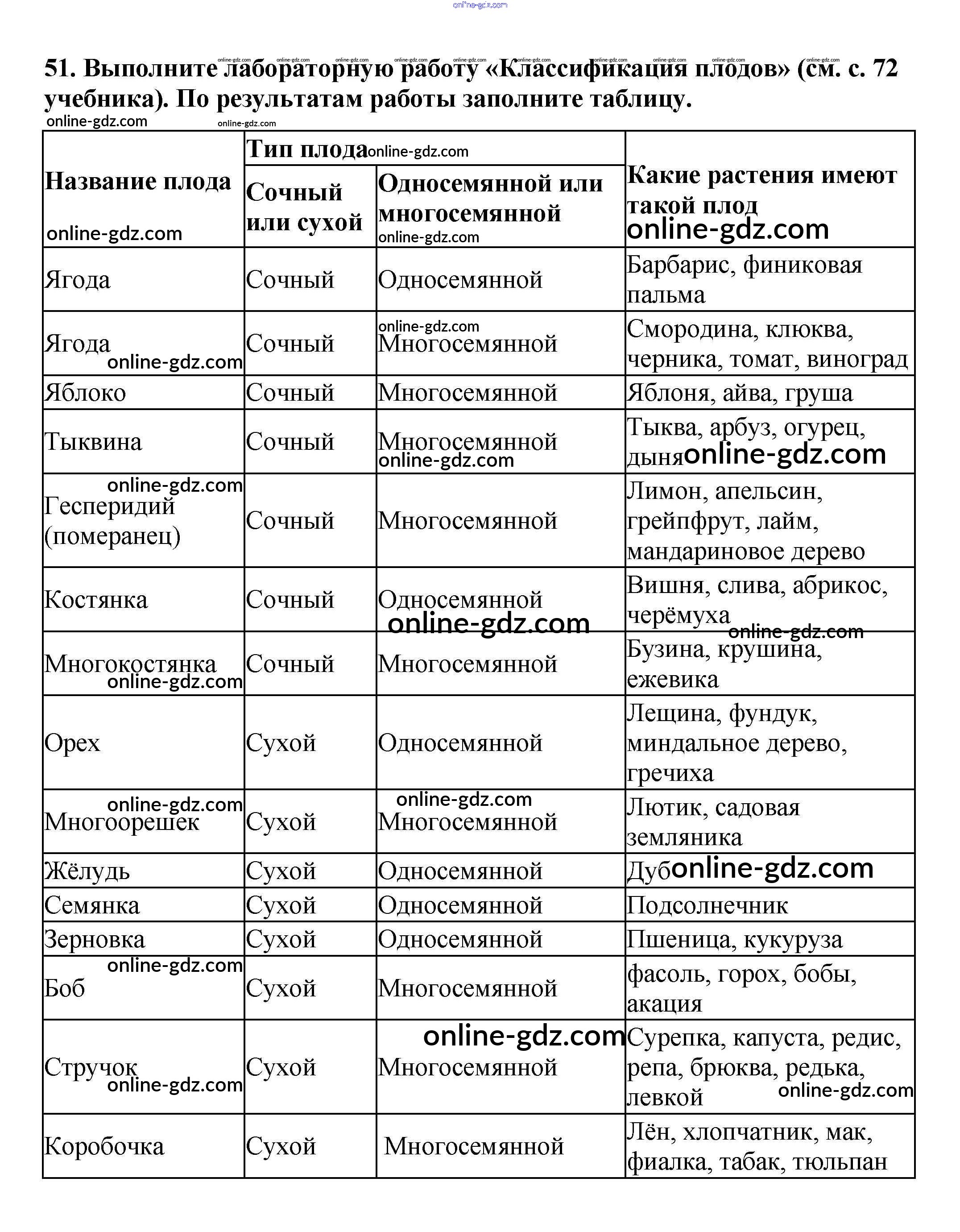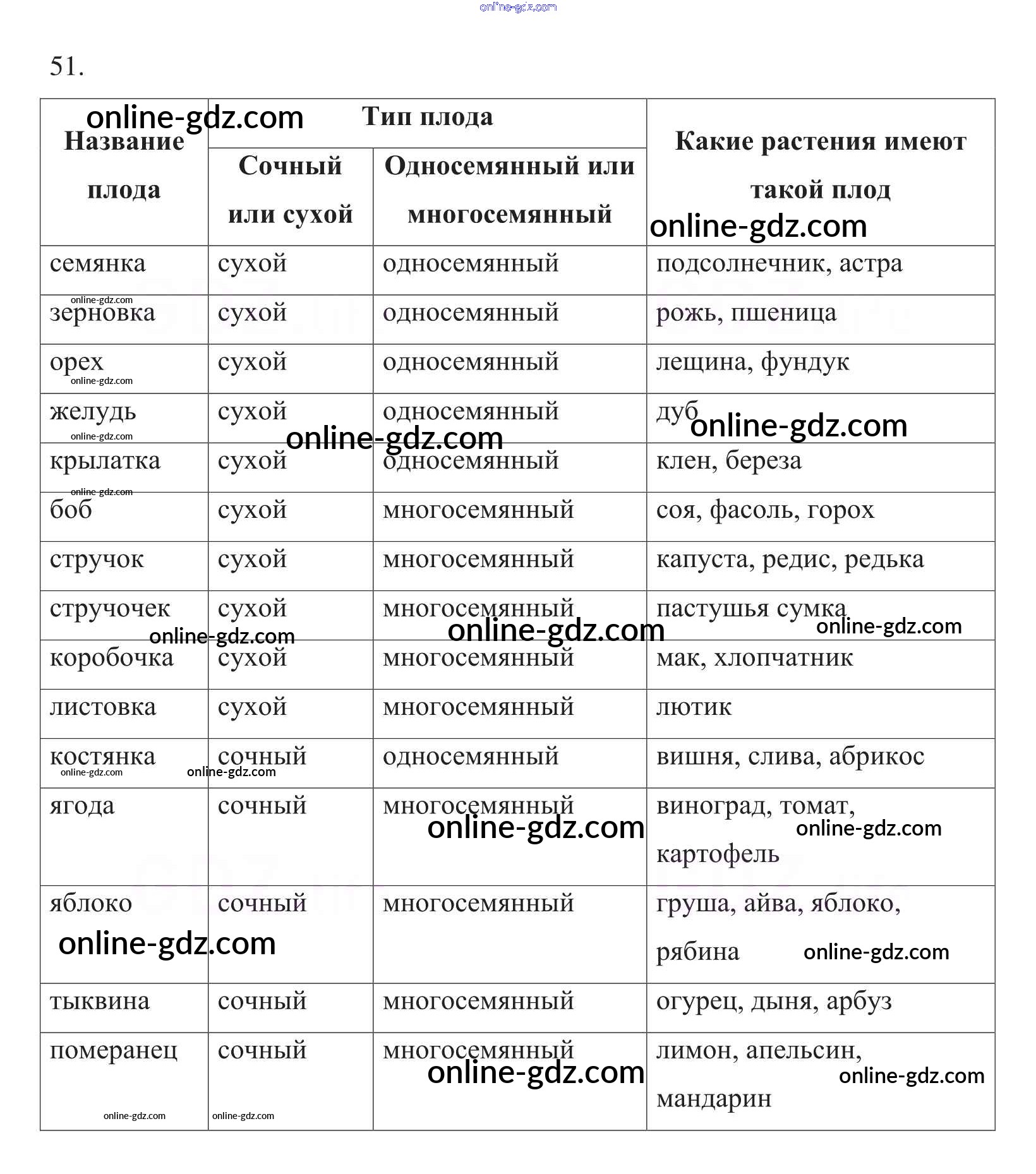 Готовые домашние задания по Биологии за 6 класс Рабочая тетрадь Пасечник УМК 2017 - Упражнения 51