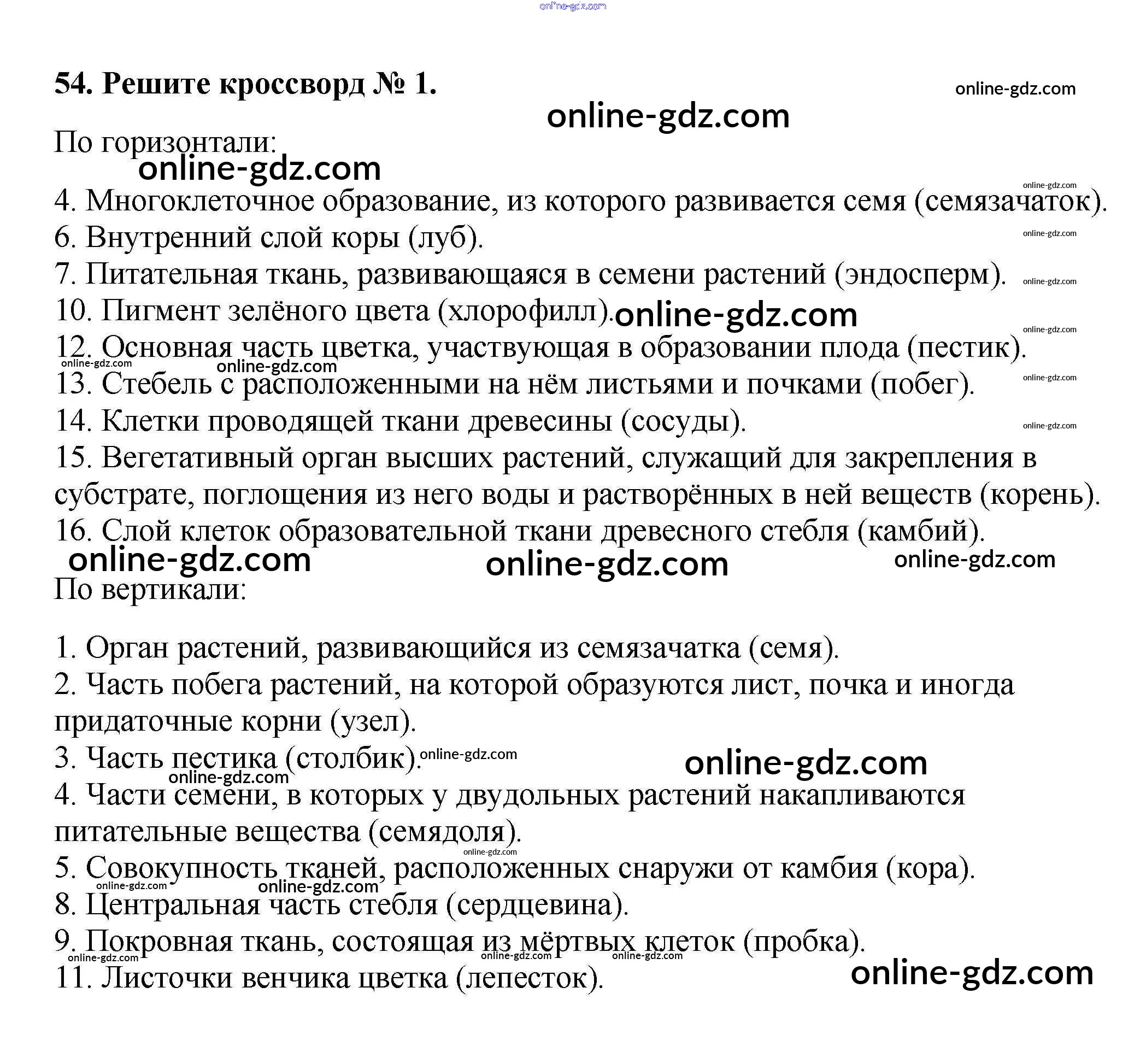 Готовые домашние задания по Биологии за 6 класс Рабочая тетрадь Пасечник УМК 2017 - Упражнения 54