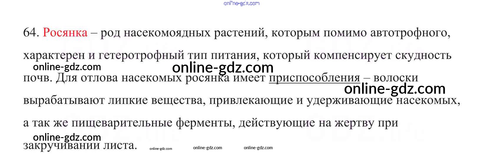 Готовые домашние задания по Биологии за 6 класс Рабочая тетрадь Пасечник УМК 2017 - Упражнения 64