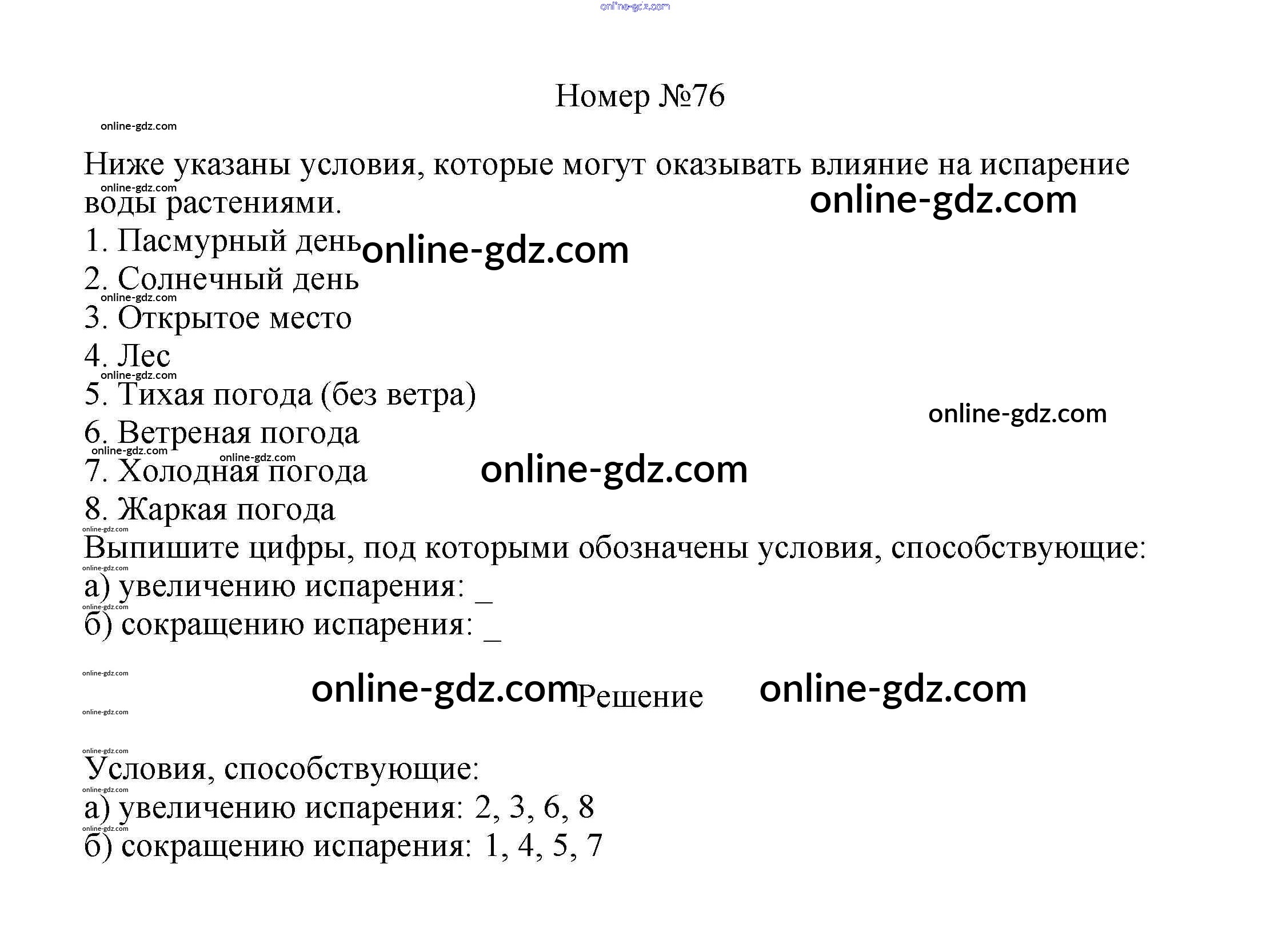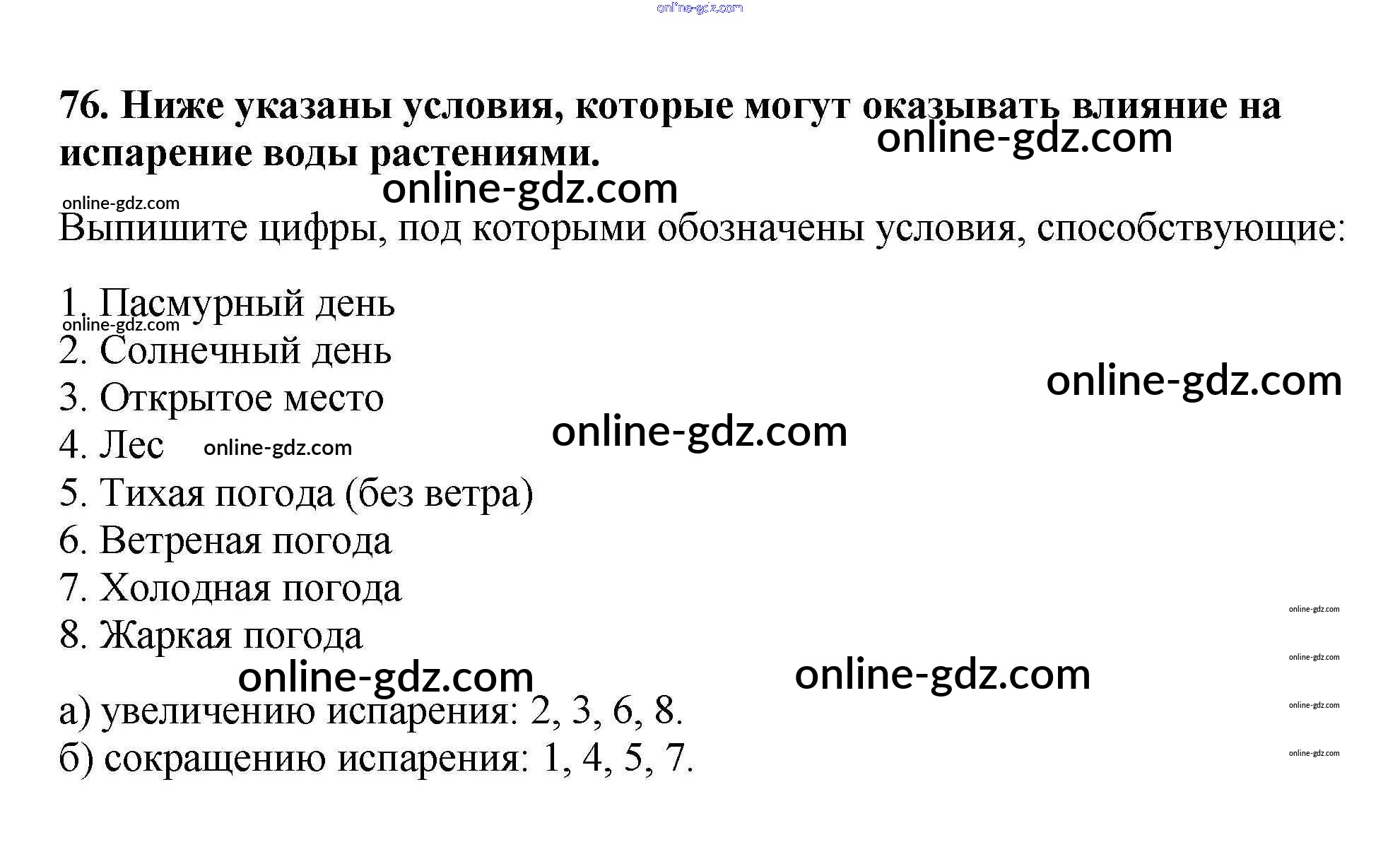 Готовые домашние задания по Биологии за 6 класс Рабочая тетрадь Пасечник УМК 2017 - Упражнения 76