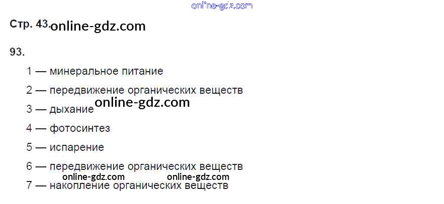 Готовые домашние задания по Биологии за 6 класс Рабочая тетрадь Пасечник УМК 2017 - Упражнения 93