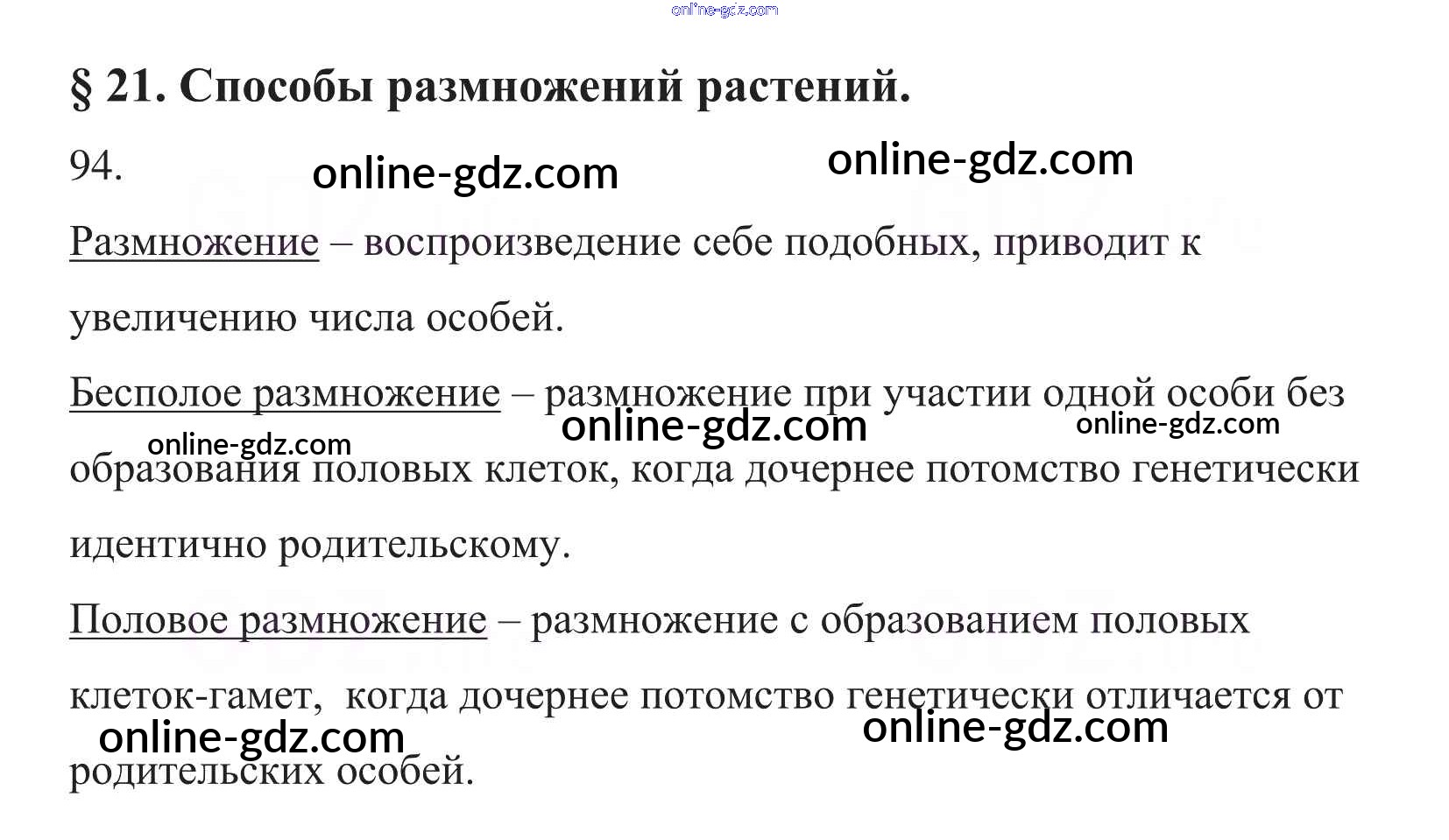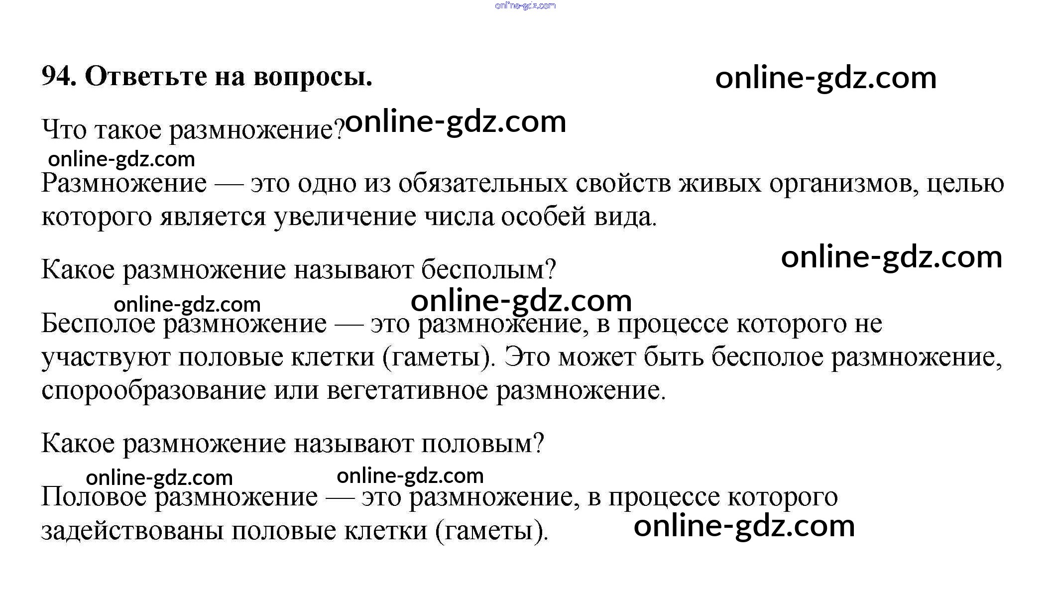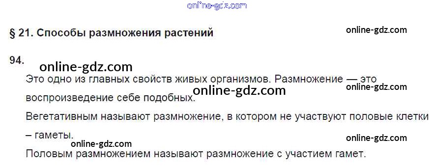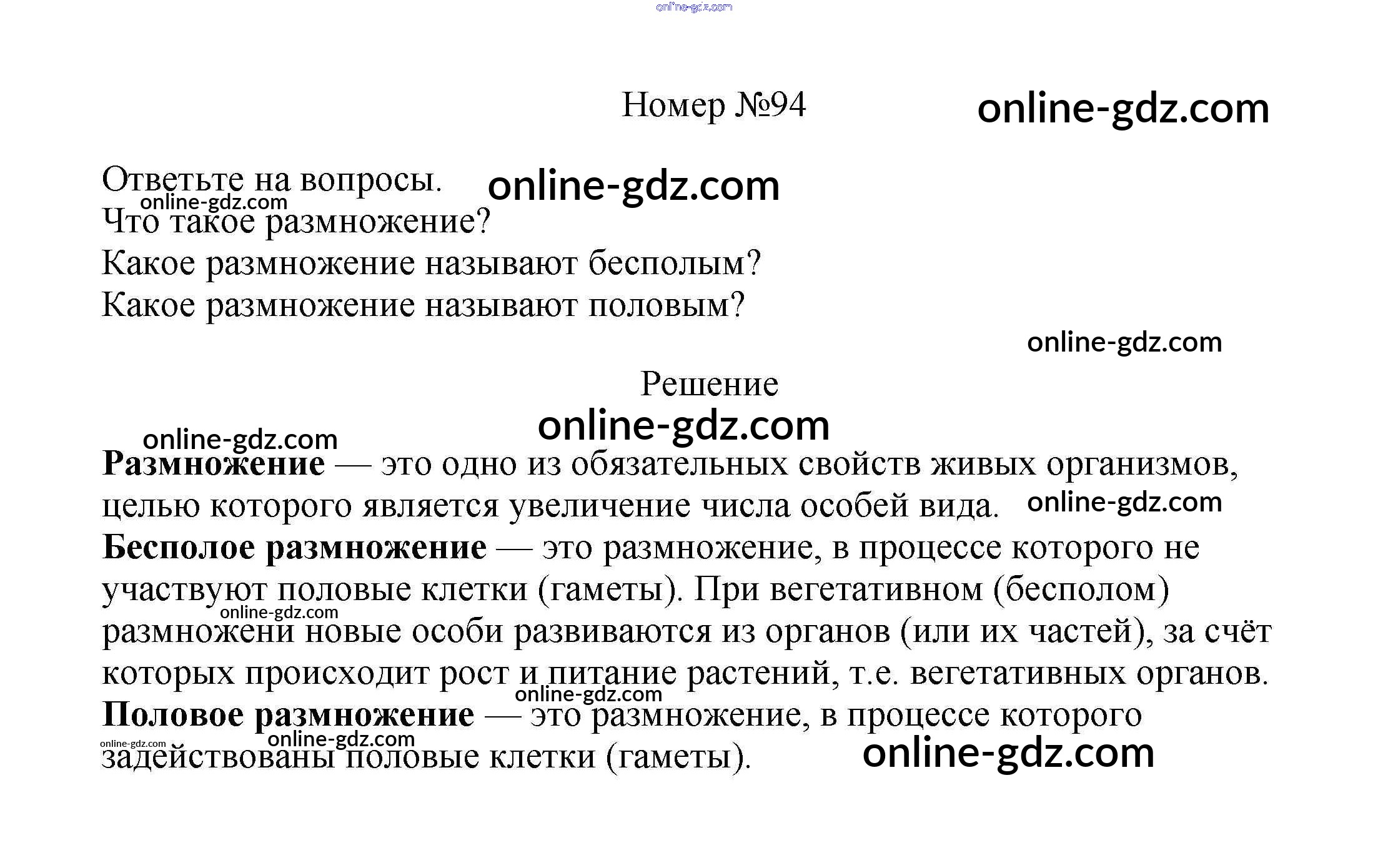 Готовые домашние задания по Биологии за 6 класс Рабочая тетрадь Пасечник УМК 2017 - Упражнения 94