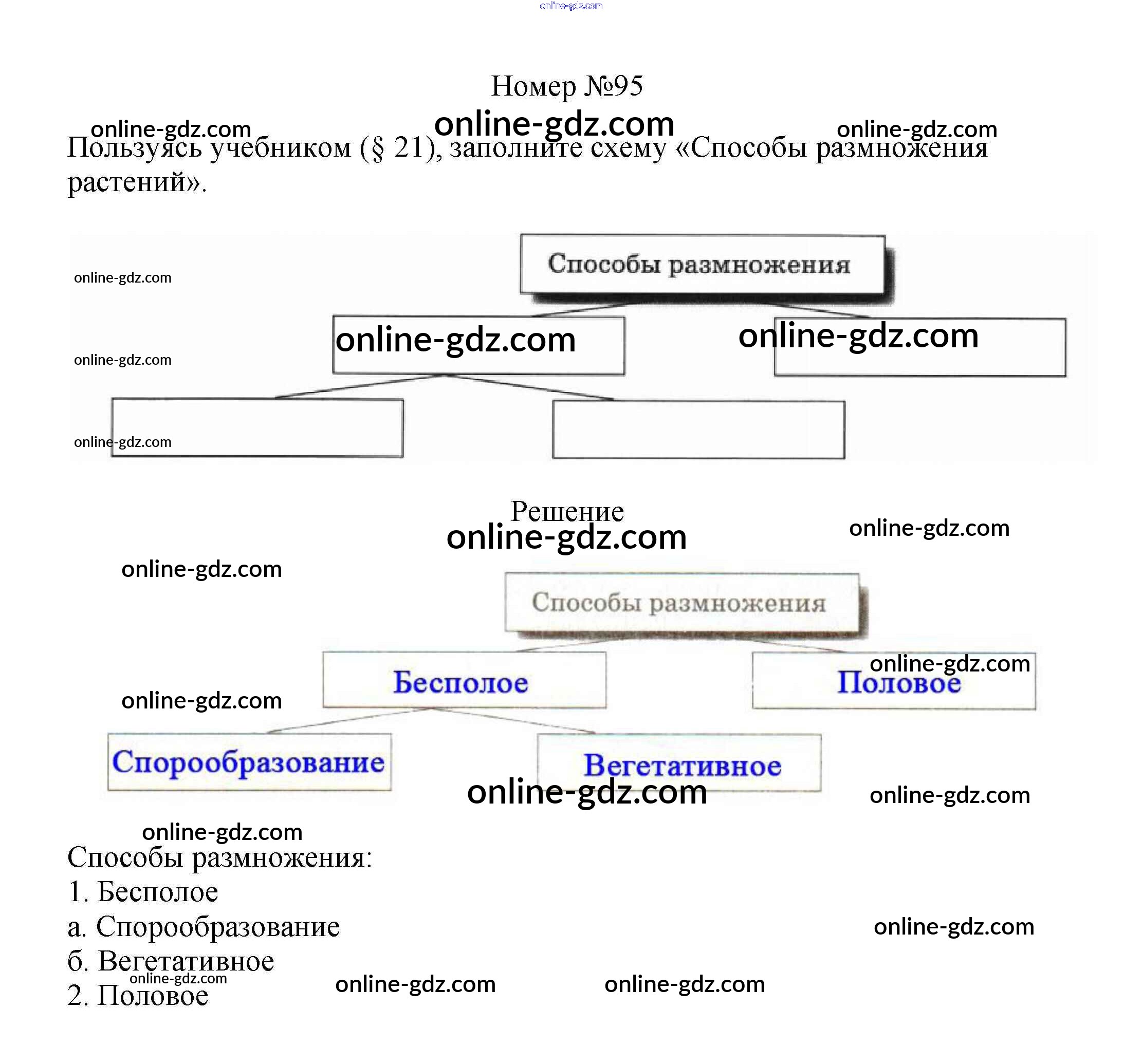 Готовые домашние задания по Биологии за 6 класс Рабочая тетрадь Пасечник УМК 2017 - Упражнения 95