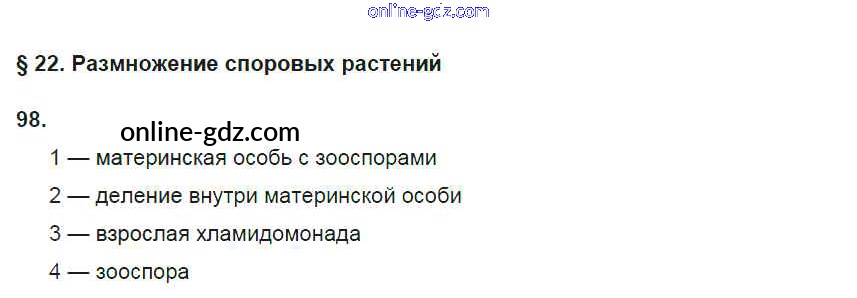 Готовые домашние задания по Биологии за 6 класс Рабочая тетрадь Пасечник УМК 2017 - Упражнения 98