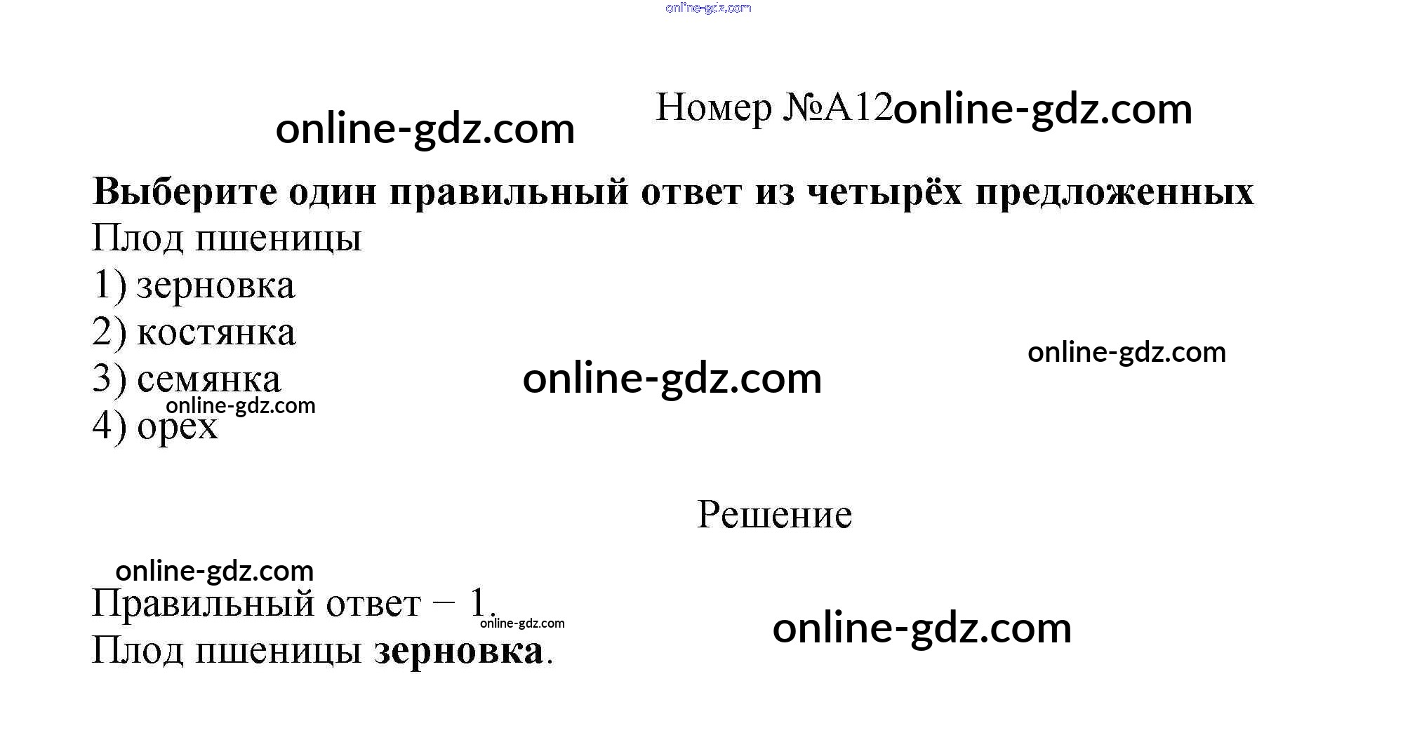 Готовые домашние задания по Биологии за 6 класс Рабочая тетрадь Пасечник УМК 2017 - Задания части A Строение и многообразие покрытосеменных растений 12