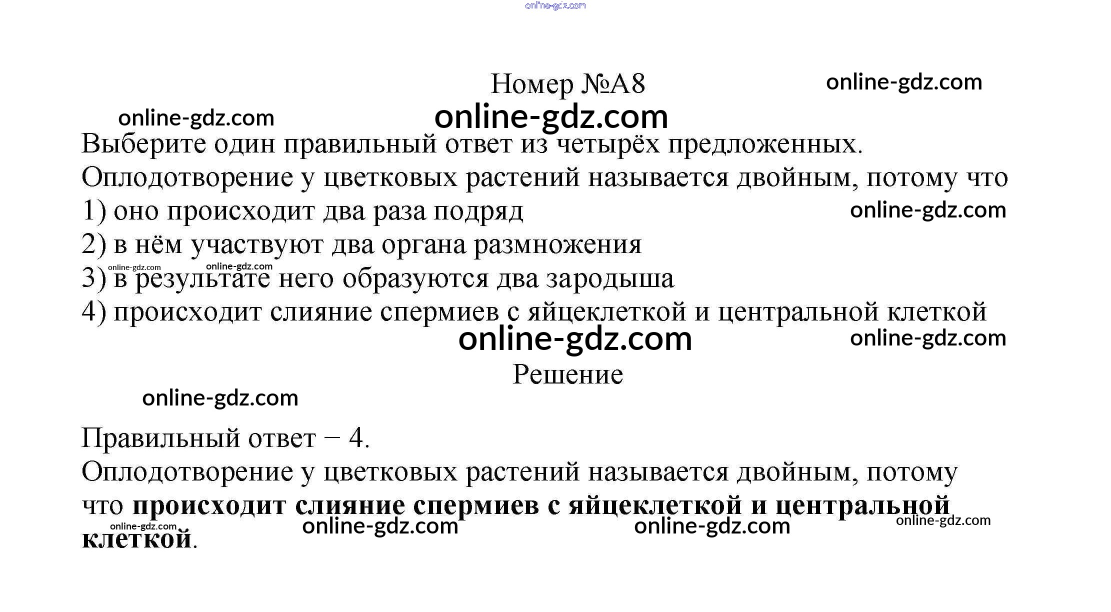 Готовые домашние задания по Биологии за 6 класс Рабочая тетрадь Пасечник УМК 2017 - Задания части A Жизнь растений 8