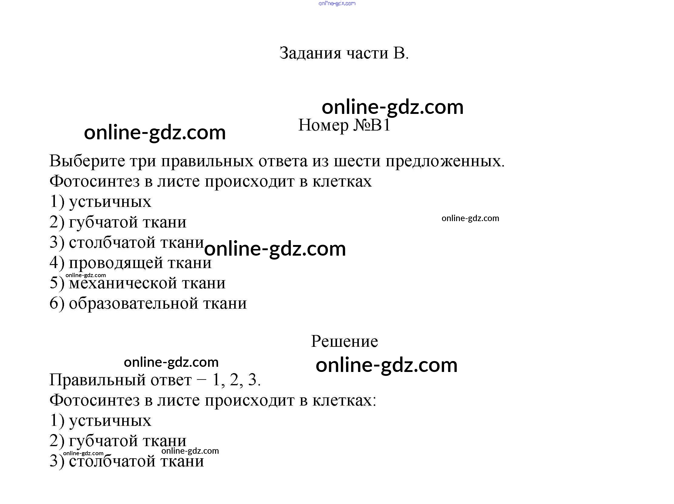 Готовые домашние задания по Биологии за 6 класс Рабочая тетрадь Пасечник УМК 2017 - Задания части B Жизнь растений 1