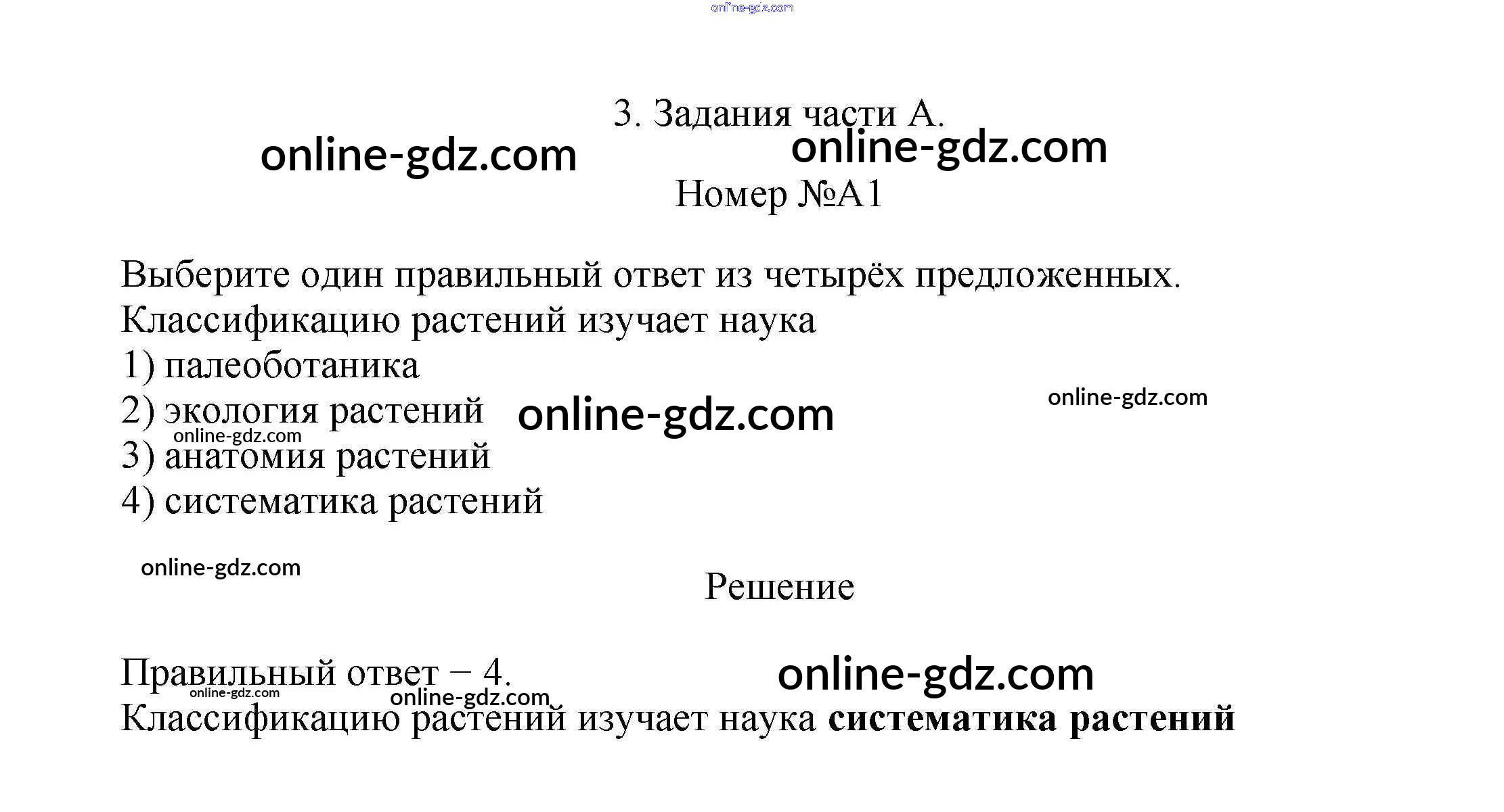 тренировочные задания / классификации растений / задания части A / 1