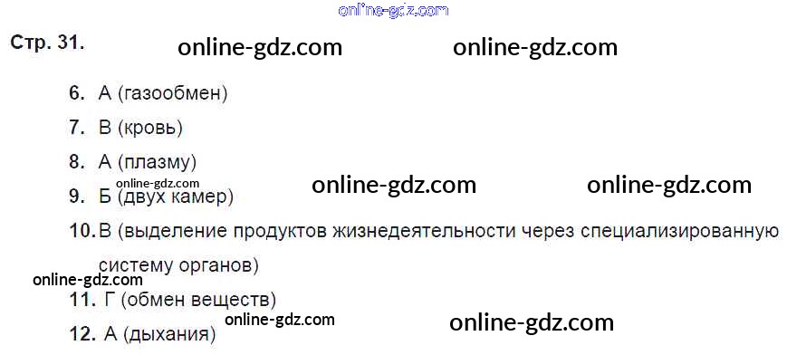 Готовые домашние задания по Биологии за 6 класс Рабочая тетрадь Пасечник, Суматохин Линия жизни 2018 - Страницы 31