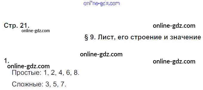 Готовые домашние задания по Биологии за 6 класс Рабочая тетрадь Пономарева, Корнилова Алгоритм успеха 2020 - Часть 1. Страницы 21