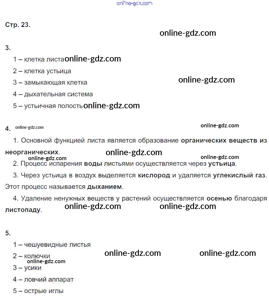 Готовые домашние задания по Биологии за 6 класс Рабочая тетрадь Пономарева, Корнилова Алгоритм успеха 2020 - Часть 1. Страницы 23