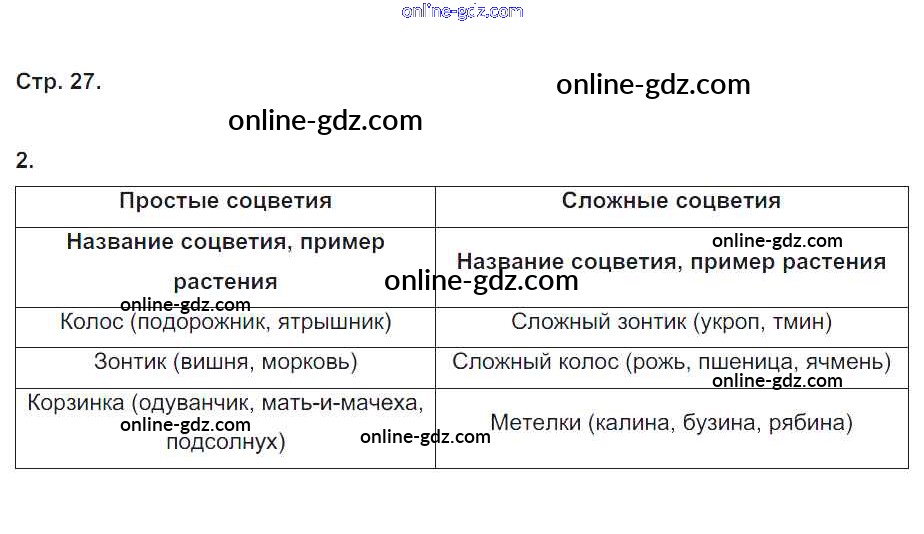 Готовые домашние задания по Биологии за 6 класс Рабочая тетрадь Пономарева, Корнилова Алгоритм успеха 2020 - Часть 1. Страницы 27