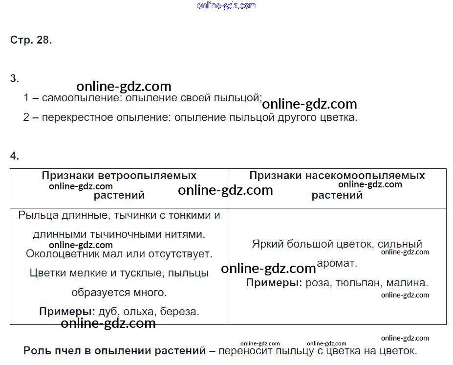 Готовые домашние задания по Биологии за 6 класс Рабочая тетрадь Пономарева, Корнилова Алгоритм успеха 2020 - Часть 1. Страницы 28