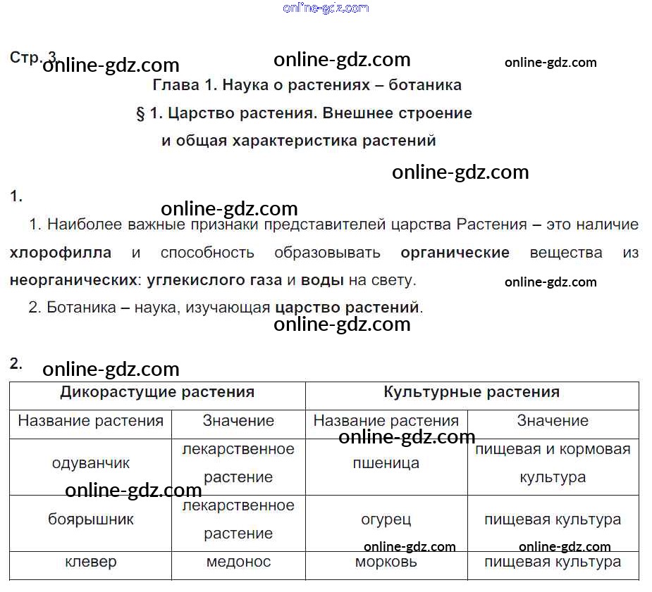 Готовые домашние задания по Биологии за 6 класс Рабочая тетрадь Пономарева, Корнилова Алгоритм успеха 2020 - Часть 1. Страницы 3