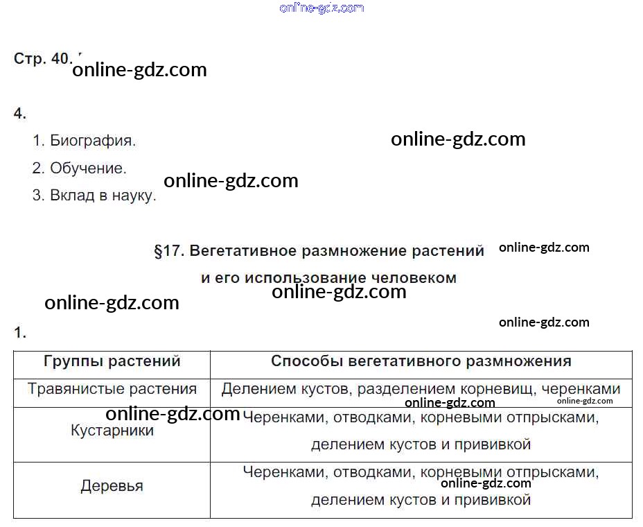 Готовые домашние задания по Биологии за 6 класс Рабочая тетрадь Пономарева, Корнилова Алгоритм успеха 2020 - Часть 1. Страницы 40
