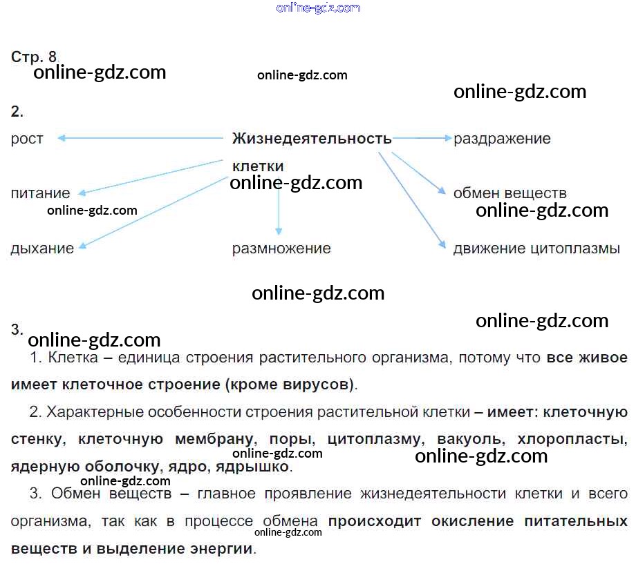 Готовые домашние задания по Биологии за 6 класс Рабочая тетрадь Пономарева, Корнилова Алгоритм успеха 2020 - Часть 1. Страницы 8