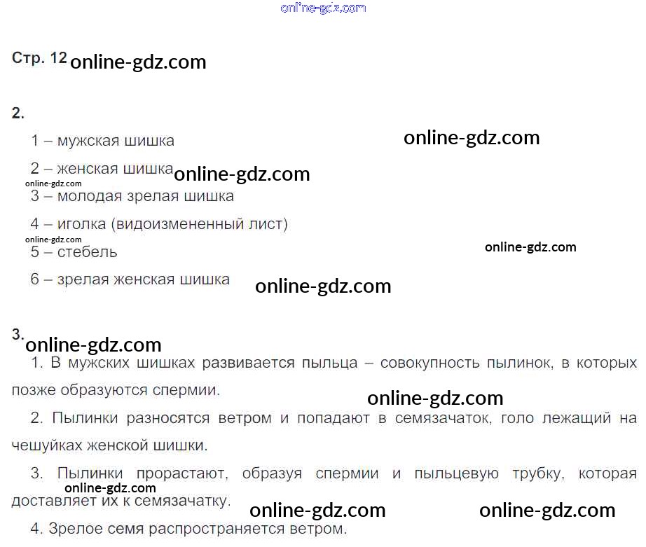 Готовые домашние задания по Биологии за 6 класс Рабочая тетрадь Пономарева, Корнилова Алгоритм успеха 2020 - Часть 2. Страницы 12